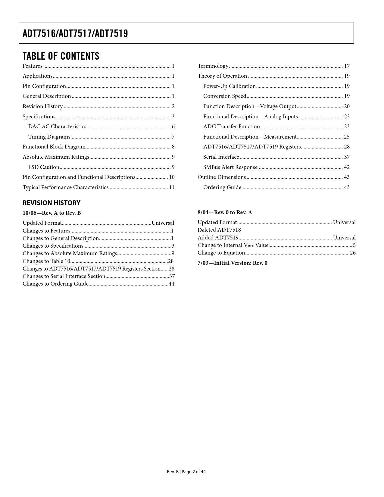 Pages / Page44 / 2 — ADT7516/ADT7517/ADT7519. TABLE OF CONTENTS. REVISION HISTORY. 10/06—Rev. …
