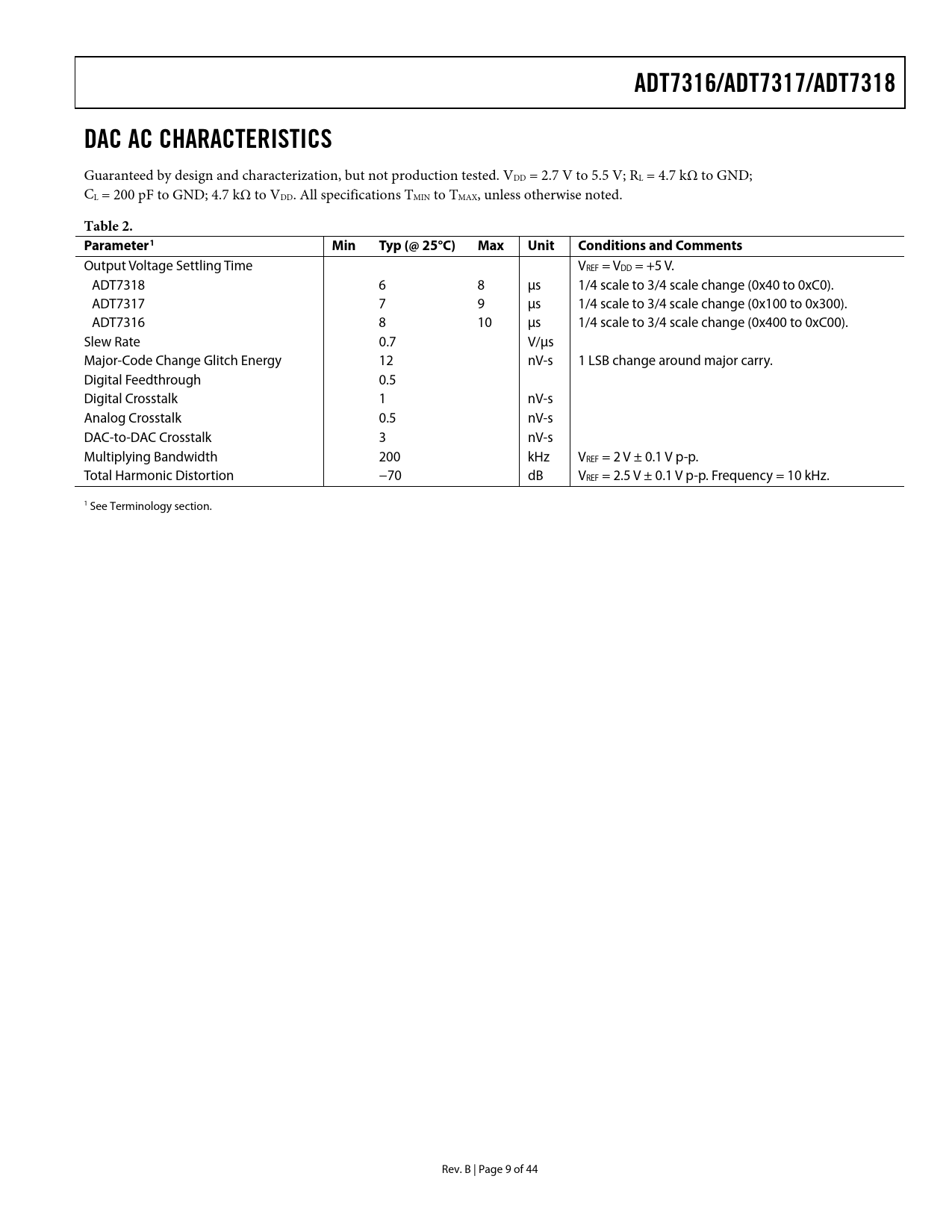 Pages / Page44 / 9 — ADT7316/ADT7317/ADT7318. DAC AC CHARACTERISTICS. Table 2. Parameter1. …