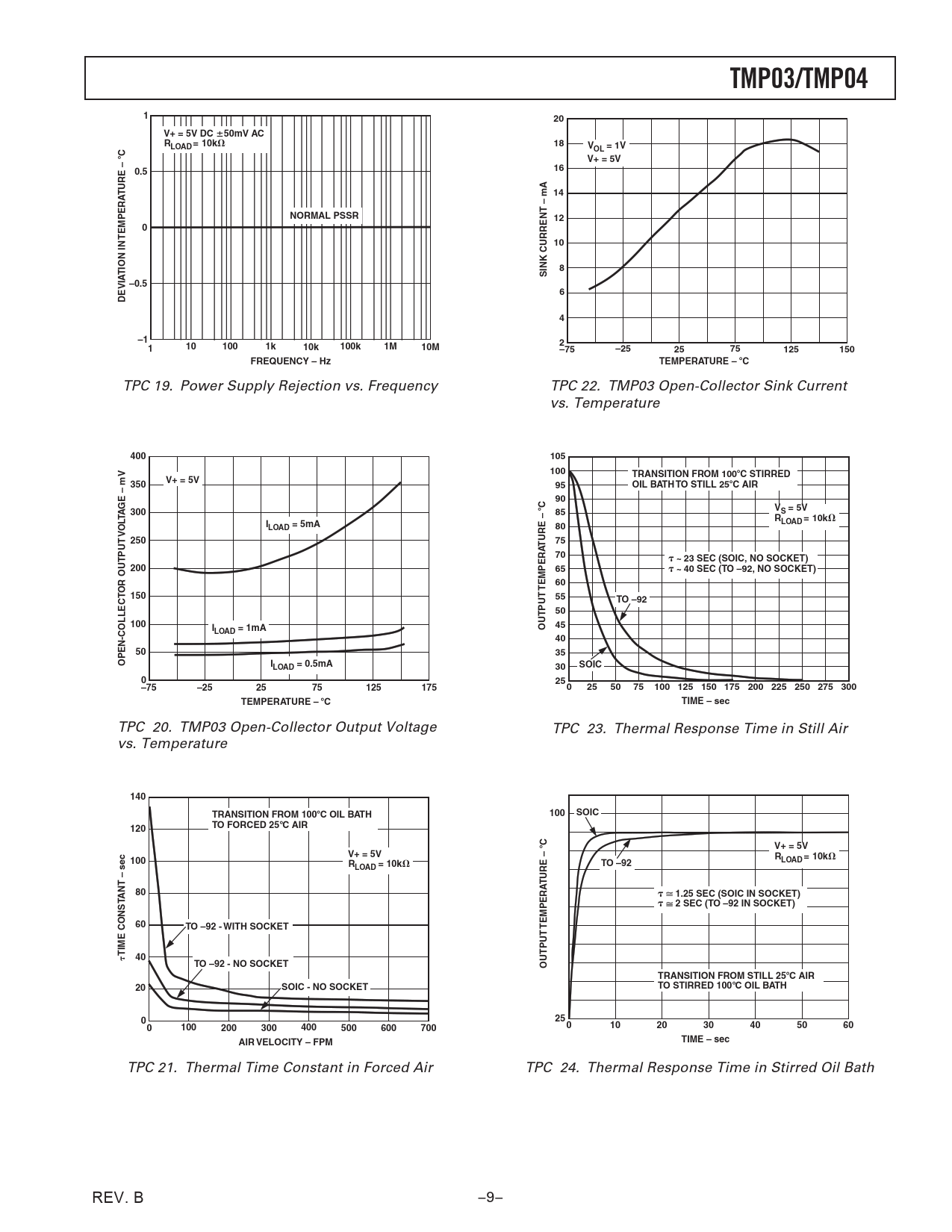 TPC 20. TMP03 Open-Collector Output Voltage TPC 23. Thermal Response Time in Still Air vs. Temperature