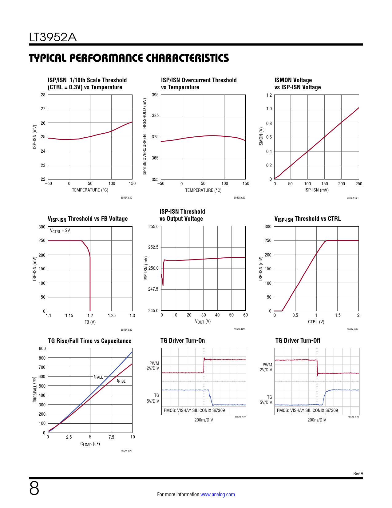 900 800 PWM 700 PWM 2V/DIV 2V/DIV 600 tFALL t (ns) RISE 500 400 TG TG t RISE/FALL 5V/DIV 300 5V/DIV PMOS: VISHAY SILICONIX Si7309 PMOS: VISHAY SILICONIX Si7309 200 200ns/DIV 3952A G26 200ns/DIV 3952A G27 100 0 0 2.5 5 7.5 10 CLOAD (nF) 3952A G25 Rev A 8 For more information www.analog.com Document Outline Features Applications Typical Application Description Absolute Maximum Ratings Order Information Pin Configuration Electrical Characteristics Typical Performance Characteristics Pin Functions Block Diagram Operation Package Description Revision History Typical Application Related Parts