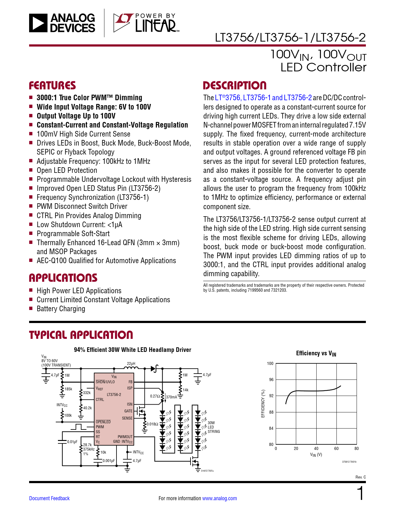 Datasheet LT3756, LT3756-1, LT3756-2 Analog Devices, Revision: C