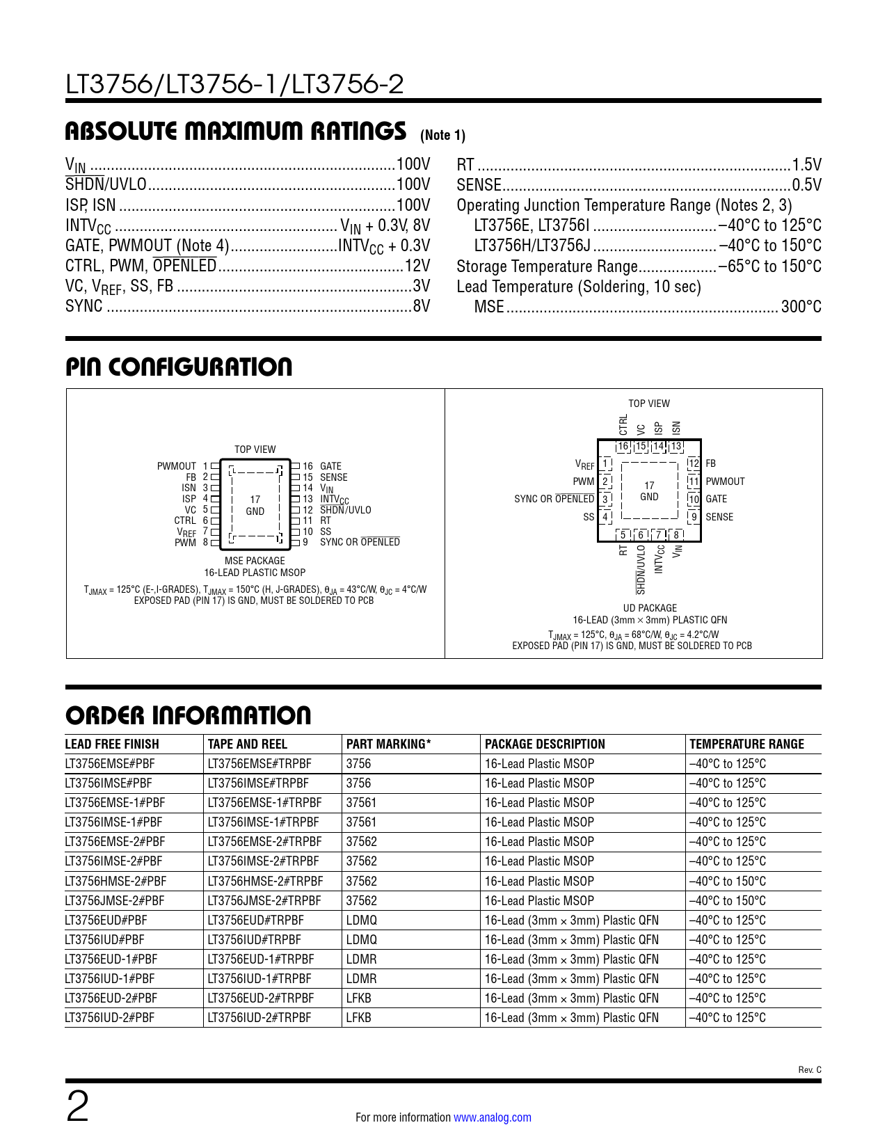 Datasheet LT3756, LT3756-1, LT3756-2 (Analog Devices) - 2