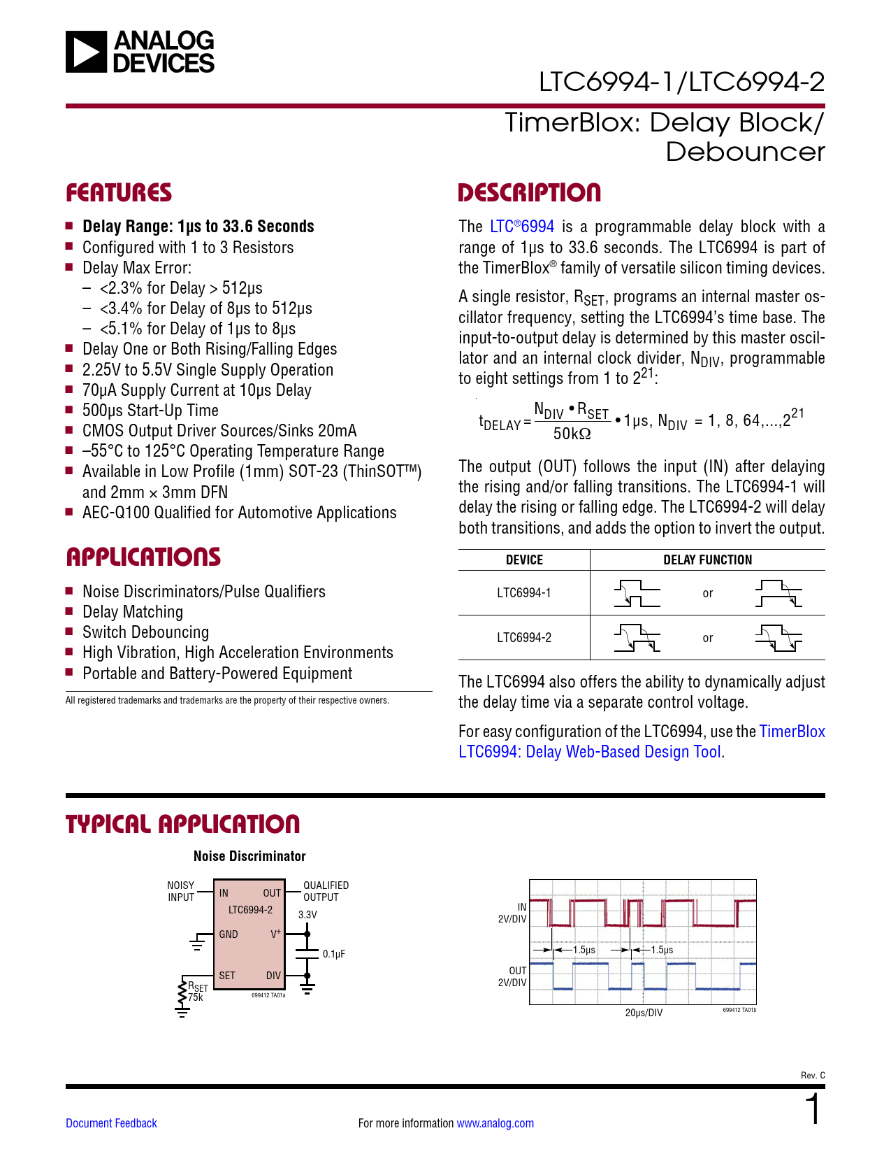 Datasheet LTC6994-1, LTC6994-2 Analog Devices, Revision: C