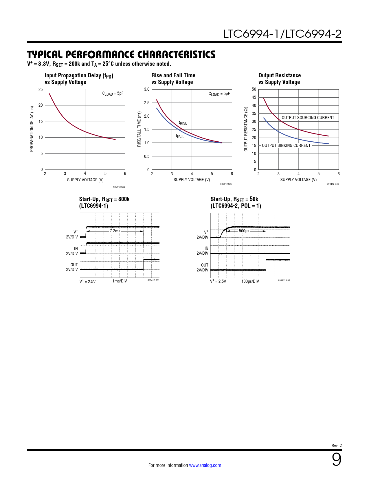 TYPICAL PERFORMANCE CHARACTERISTICS V+ = 3.3V, RSET = 200k and TA = 25°C unless otherwise noted. Input Propagation Delay (tPD) Rise and Fall Time Output Resistance vs Supply Voltage vs Supply Voltage vs Supply Voltage