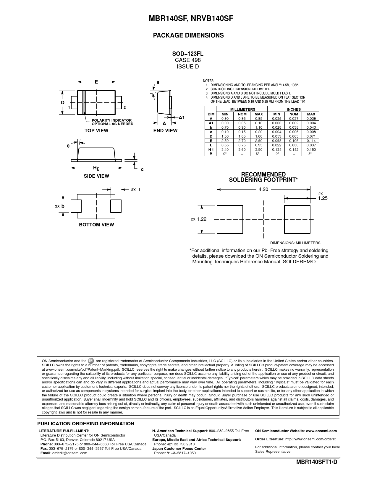MBR140SF, NRVB140SF PACKAGE DIMENSIONS SOD−123FL MILLIMETERS INCHES DIM MIN NOM MAX POLARITY INDICATOR OPTIONAL AS NEEDED