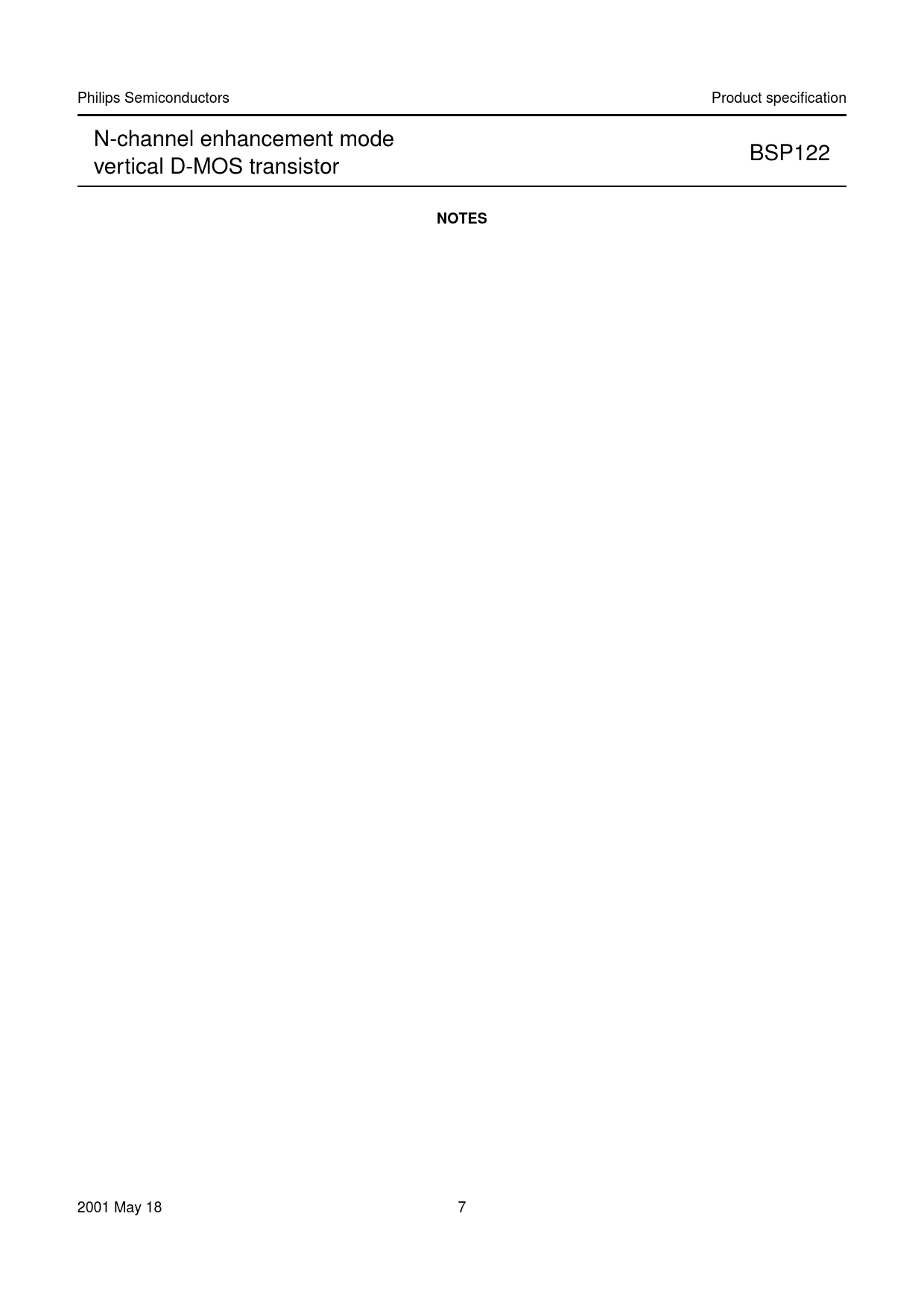 Philips Semiconductors Product specification N-channel enhancement mode BSP122 vertical D-MOS transistor