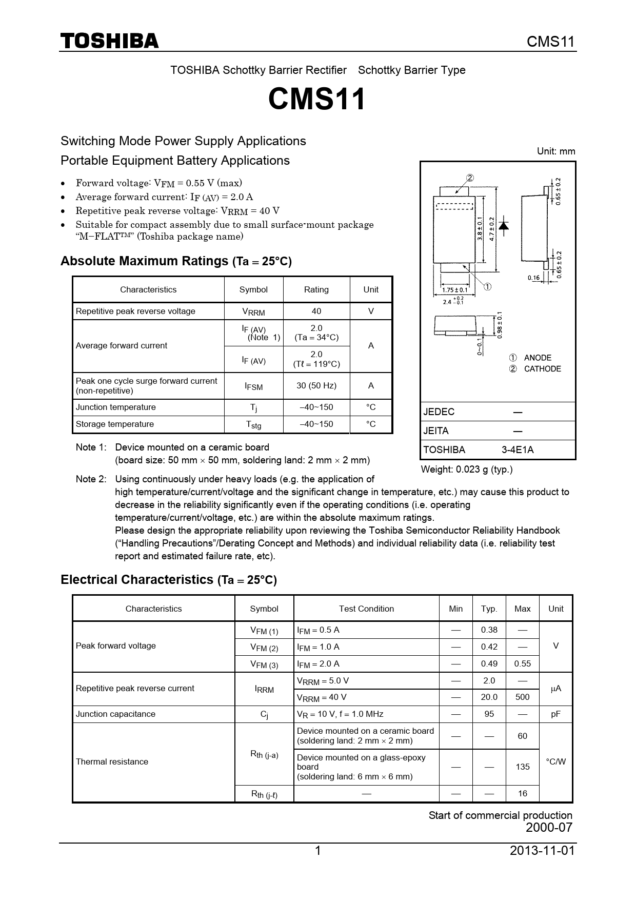 CMS11 TOSHIBA Schottky Barrier Rectifier Schottky Barrier Type