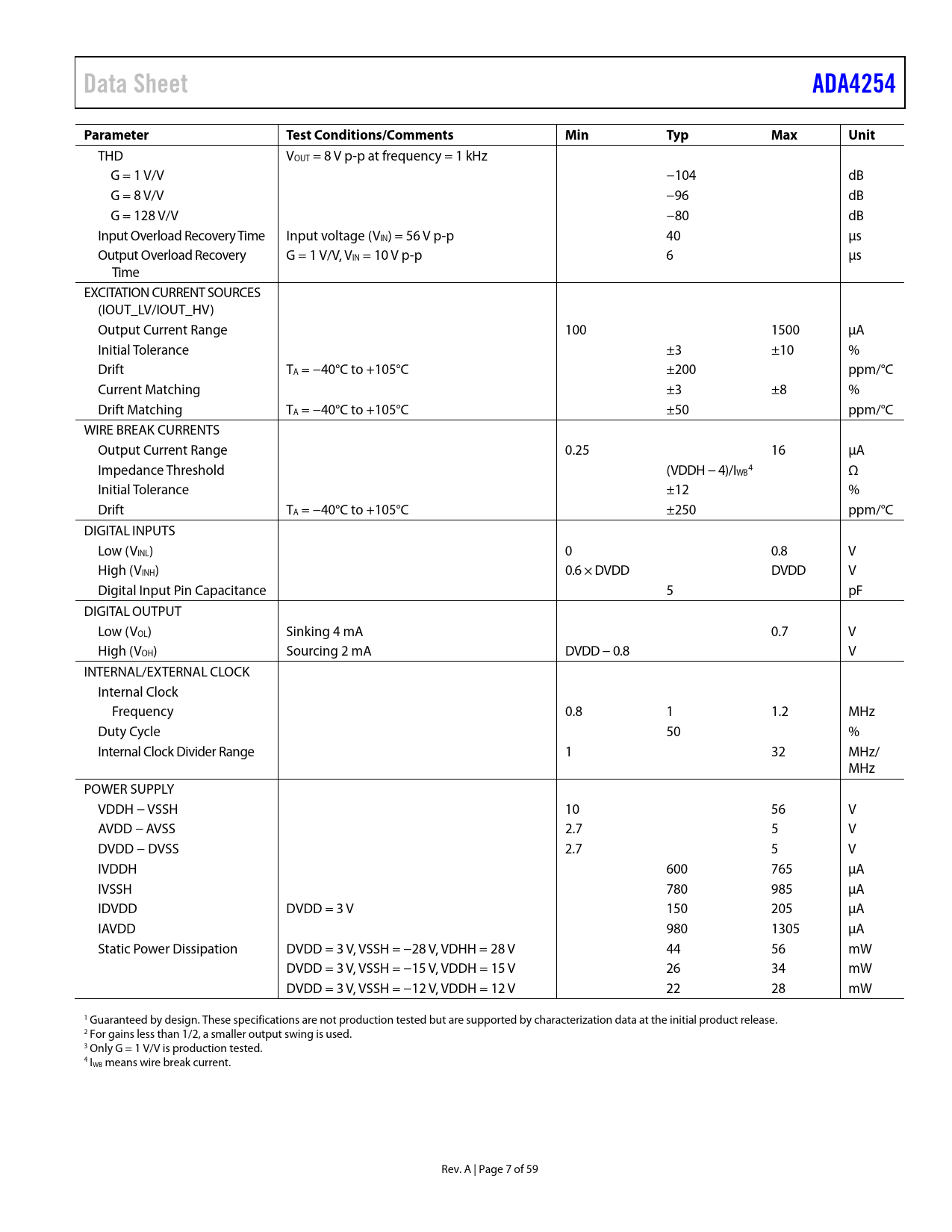 Pages / Page59 / 7 — Data Sheet. ADA4254. Parameter. Test Conditions/Comments. Min. Typ. Max. …