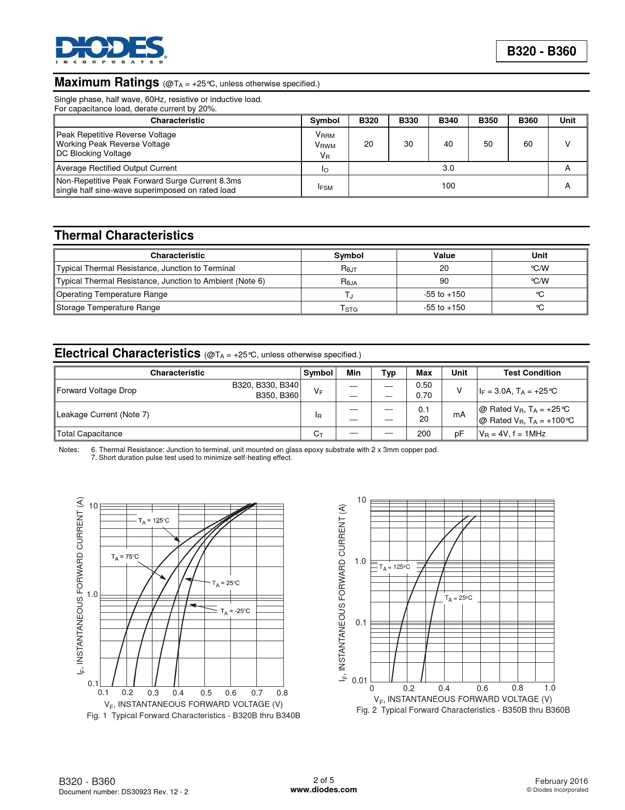 B320 - B360. Maximum Ratings. Characteristic. Symbol. B320. B330. B340. B350. B360. Unit. Thermal Characteristics. Value