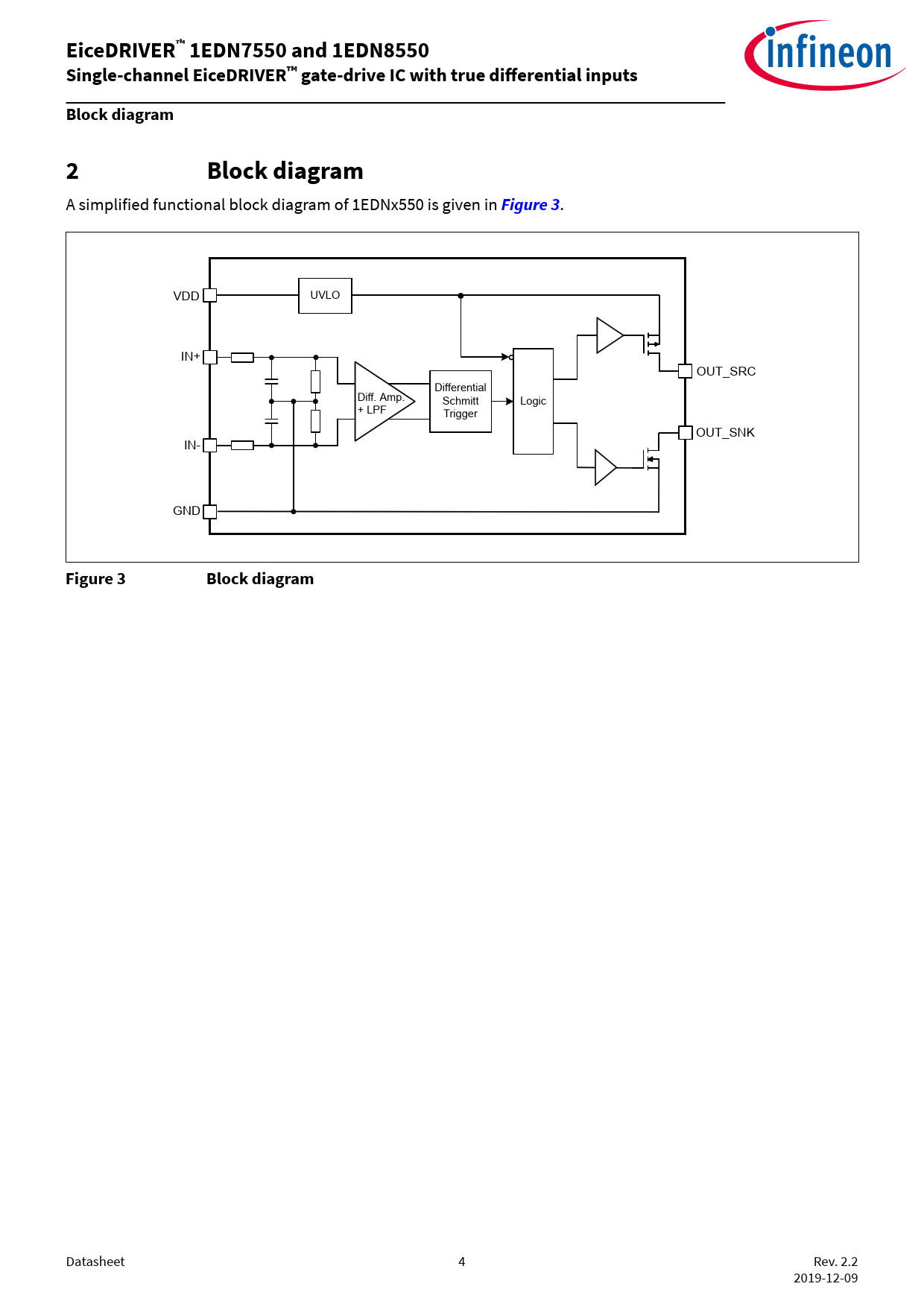 EiceDRIVER™ 1EDN7550 and 1EDN8550 Single-channel EiceDRIVER™ gate-drive IC with true differential inputs Block diagram 2 Block diagram