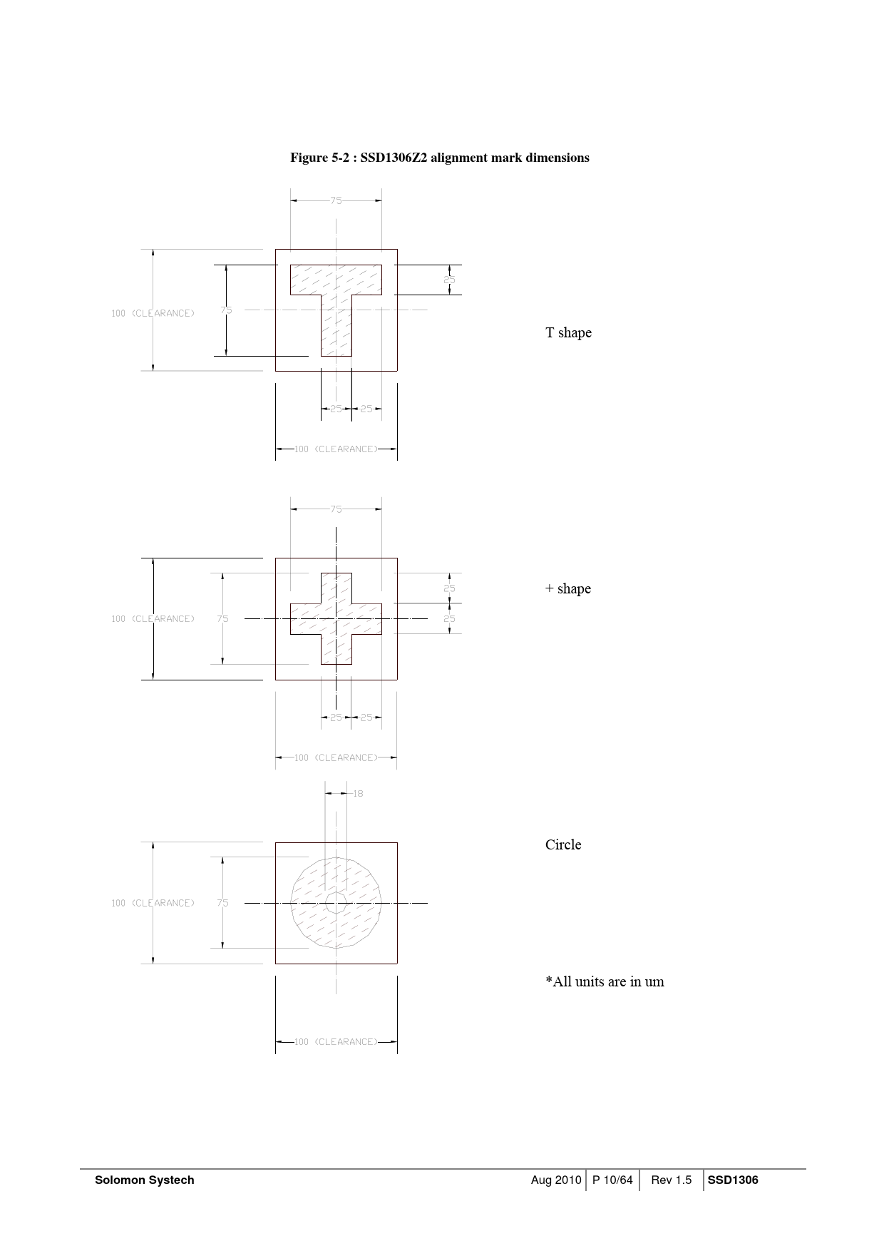 Pages / Page64 / 10 — Figure 5-2 : SSD1306Z2 alignment mark dimensions. Solomon Systech. SSD1306