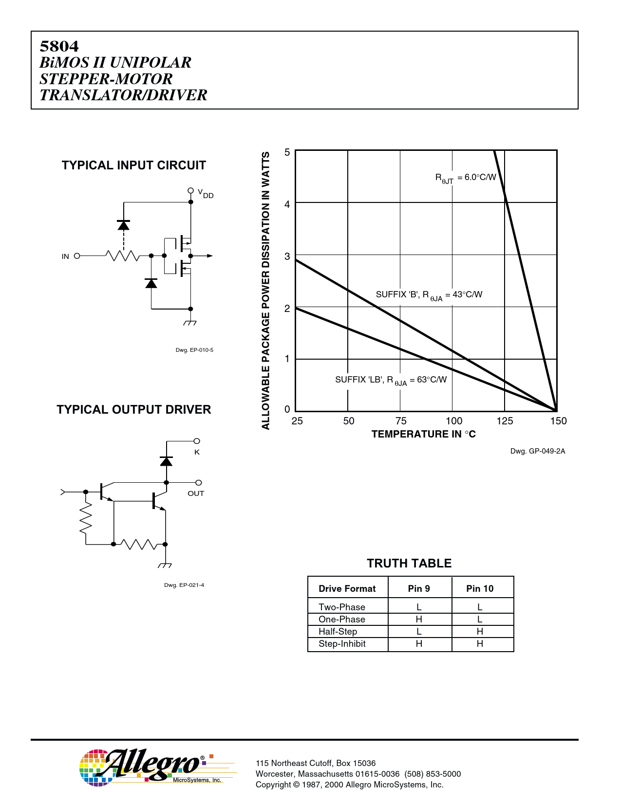 Two-Phase L L One-Phase H L Half-Step L H Step-Inhibit H H 115 Northeast Cutoff, Box 15036 Worcester, Massachusetts 01615-0036 (508) 853-5000 Copyright © 1987, 2000 Allegro MicroSystems, Inc.