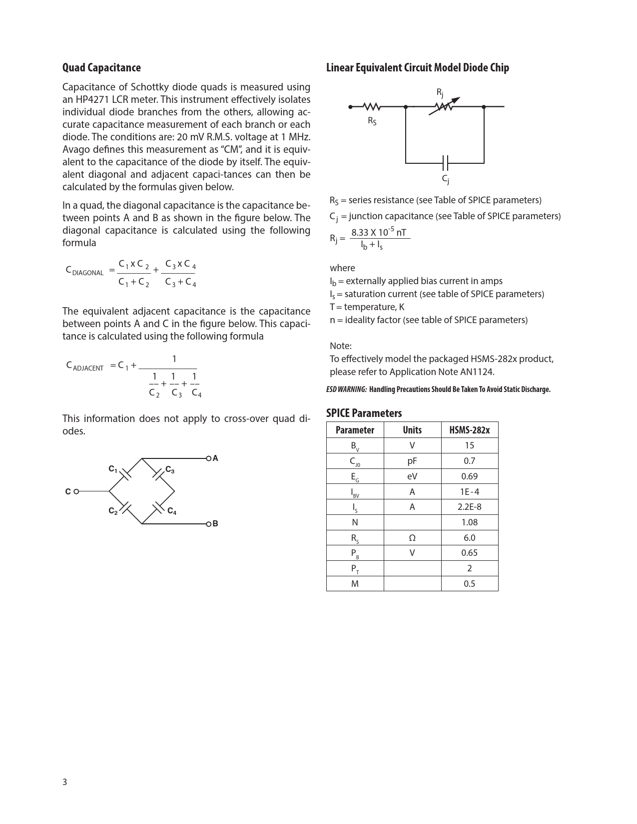 Pages / Page15 / 3 — Quad Capacitance. Linear Equivalent Circuit Model Diode Chip. ESD WARNING: