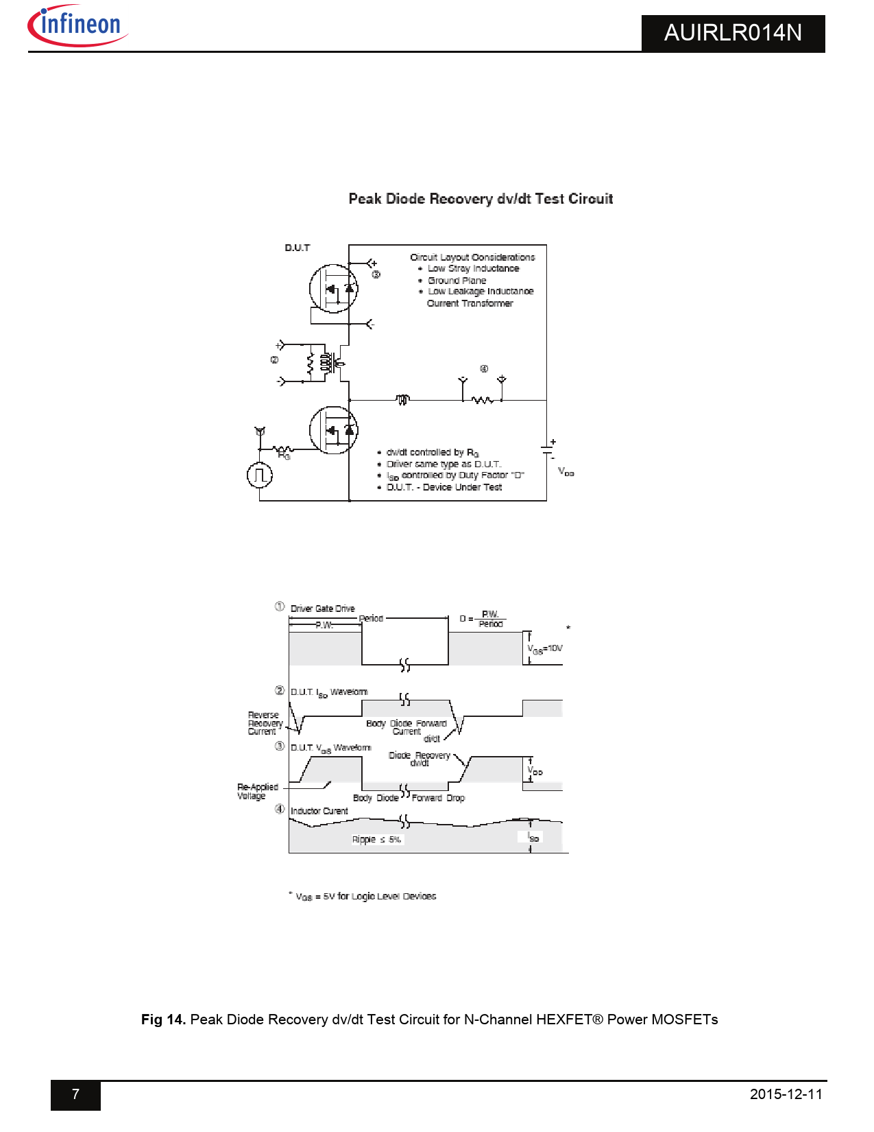 Peak Diode Recovery dv/dt Test Circuit for N-Channel HEXFET® Power MOSFETs 7 2015-12-11