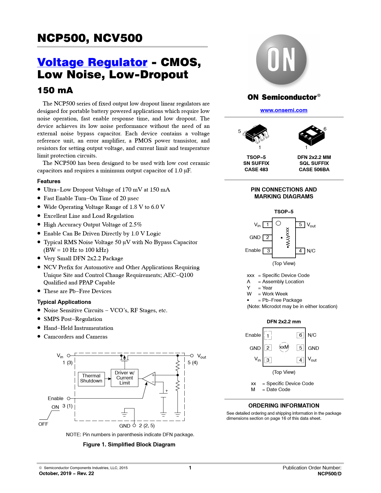 October, 2019 − Rev. 22 NCP500/D