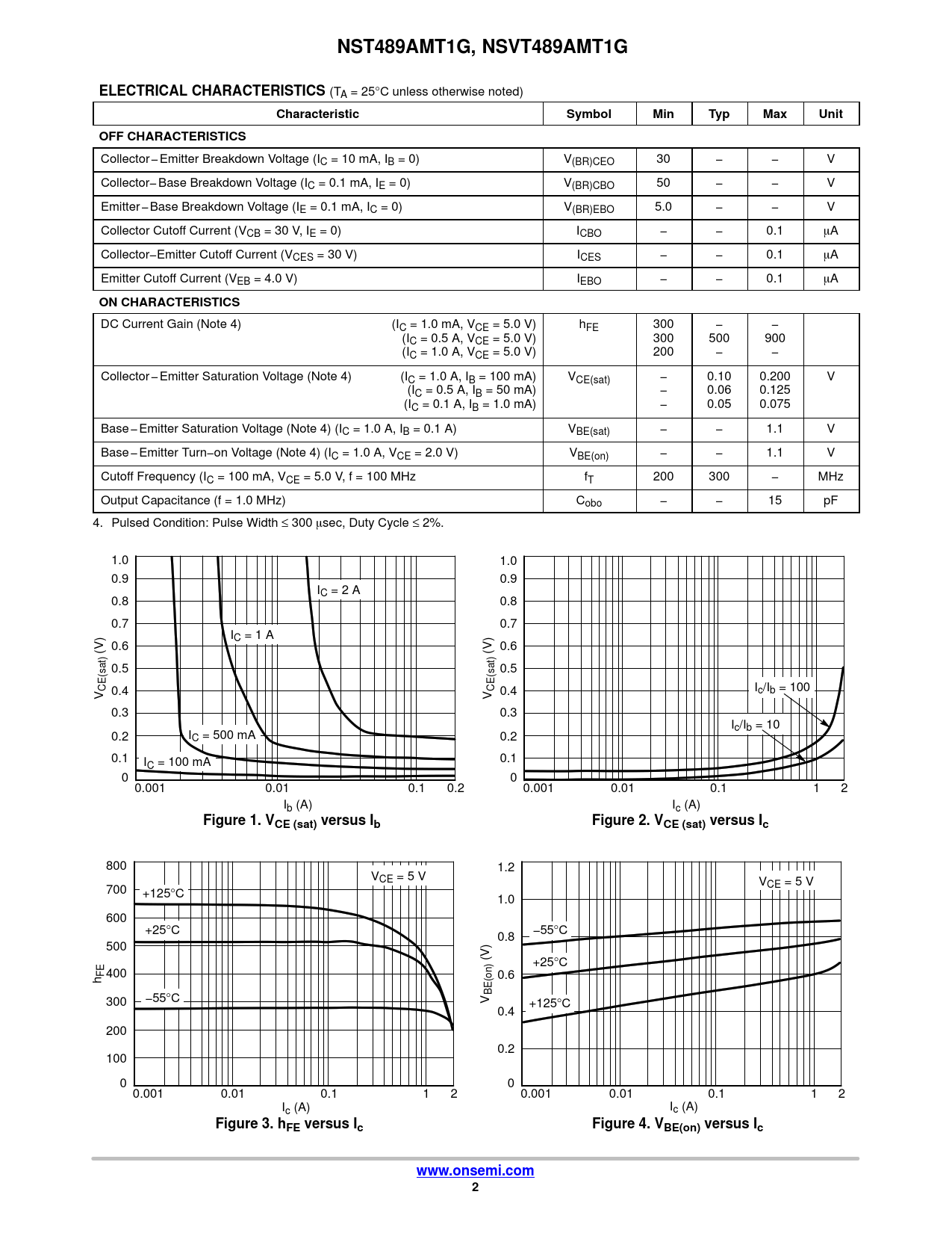 | Pages / Page | 4 / 2 — NST489AMT1G, NSVT489AMT1G. ELECTRICAL CHARACTERISTICS. Characteristic. … |