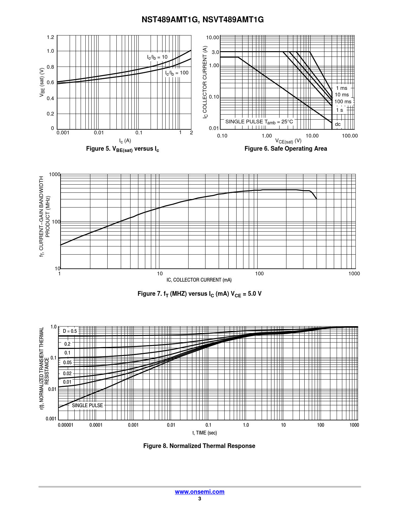 | Pages / Page | 4 / 3 — NST489AMT1G, NSVT489AMT1G. Figure 5. VBE(sat) versus Ic. Figure 6. Safe … |