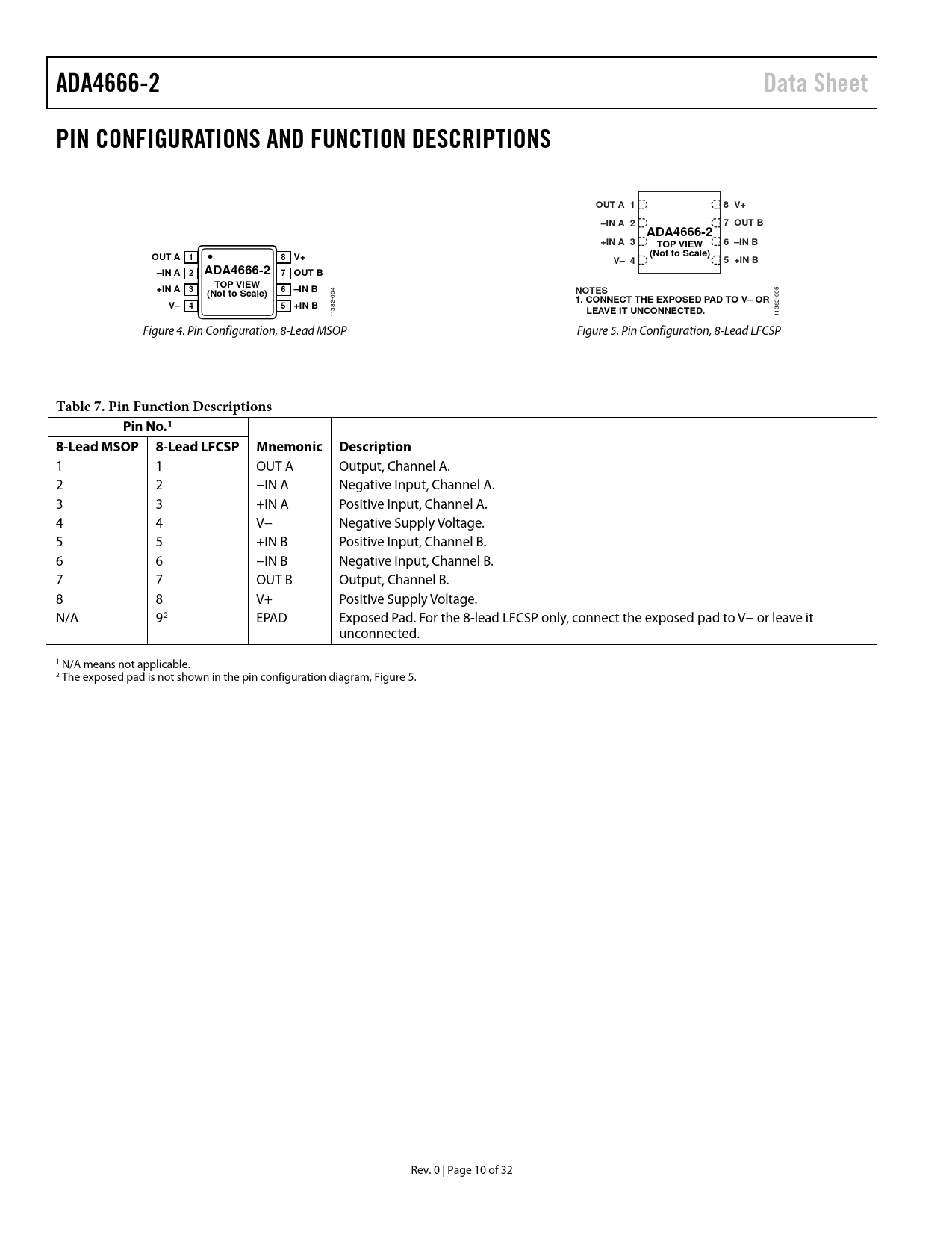 Pages / Page32 / 10 — ADA4666-2. Data Sheet. PIN CONFIGURATIONS AND FUNCTION DESCRIPTIONS. OUT …