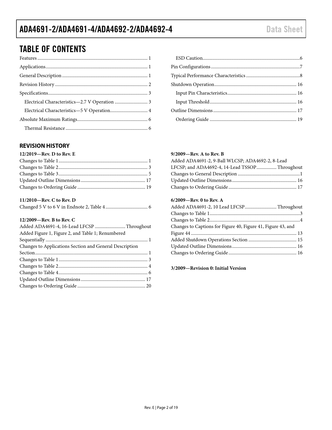 REVISION HISTORY 12/2019—Rev. D to Rev. E 9/2009—Rev. A to Rev. B