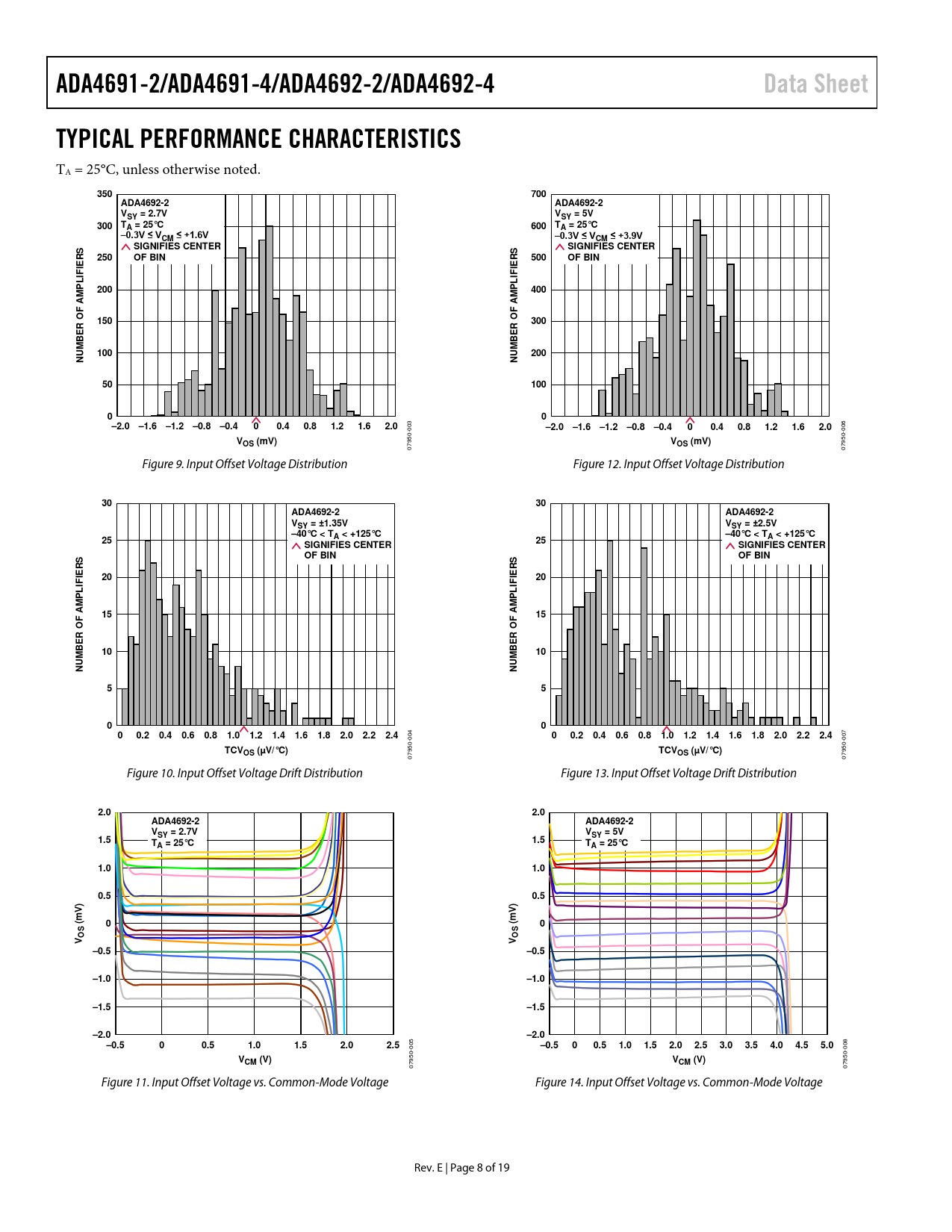 07950- 07950- Figure 10. Input Offset Voltage Drift Distribution Figure 13. Input Offset Voltage Drift Distribution