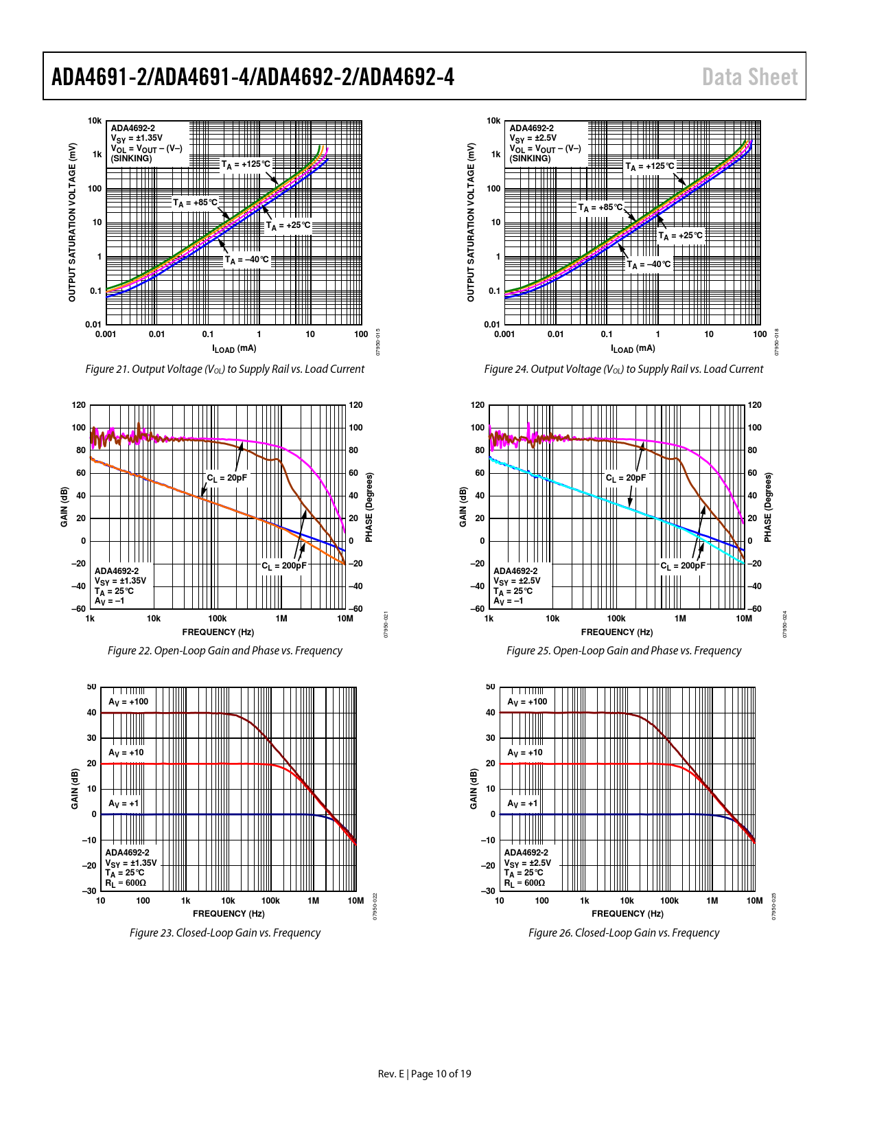 ADA4691-2/ADA4691-4/ADA4692-2/ADA4692-4. Data Sheet. 10k. ADA4692-2. SY = ±1.35V. SY = ±2.5V. VOL = VOUT – (V–). (SINKING). A = +125°C