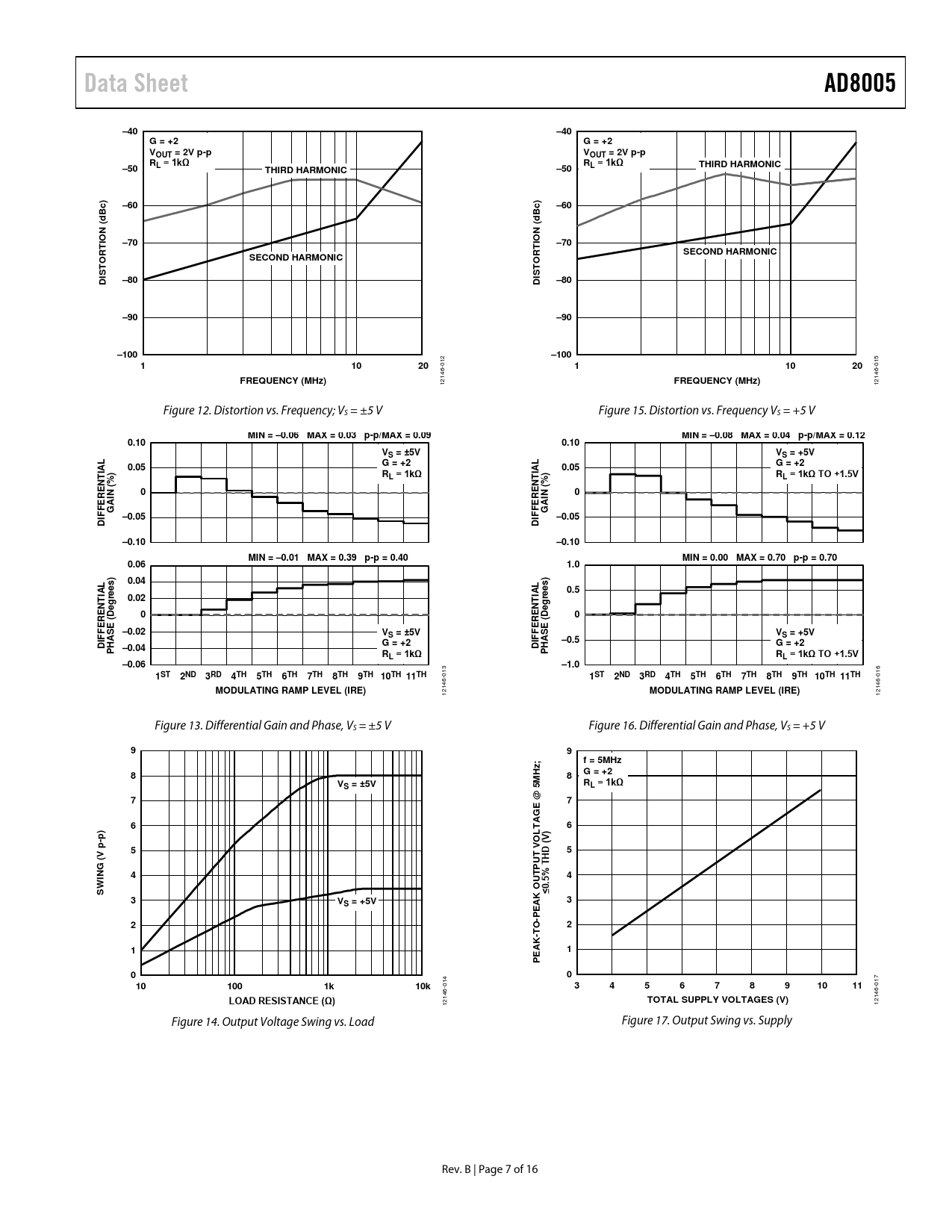 | Pages / Page | 16 / 7 — Data Sheet. AD8005. –40. G = +2. VOUT = 2V p-p. RL = 1kΩ. –50. L = 1kΩ. … |
