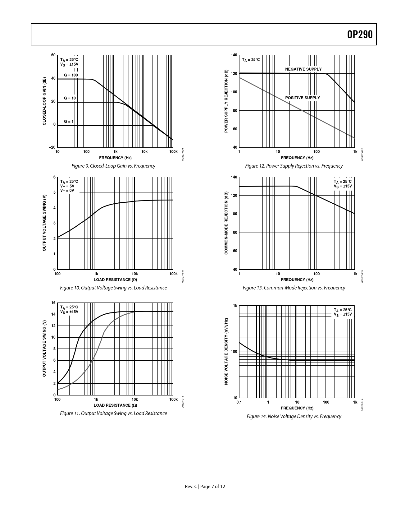 12 /7 — OP290. 140. TA = 25°C. VS = ±15V. NEGATIVE SUPPLY. G = 100. 120. (d N. dB …