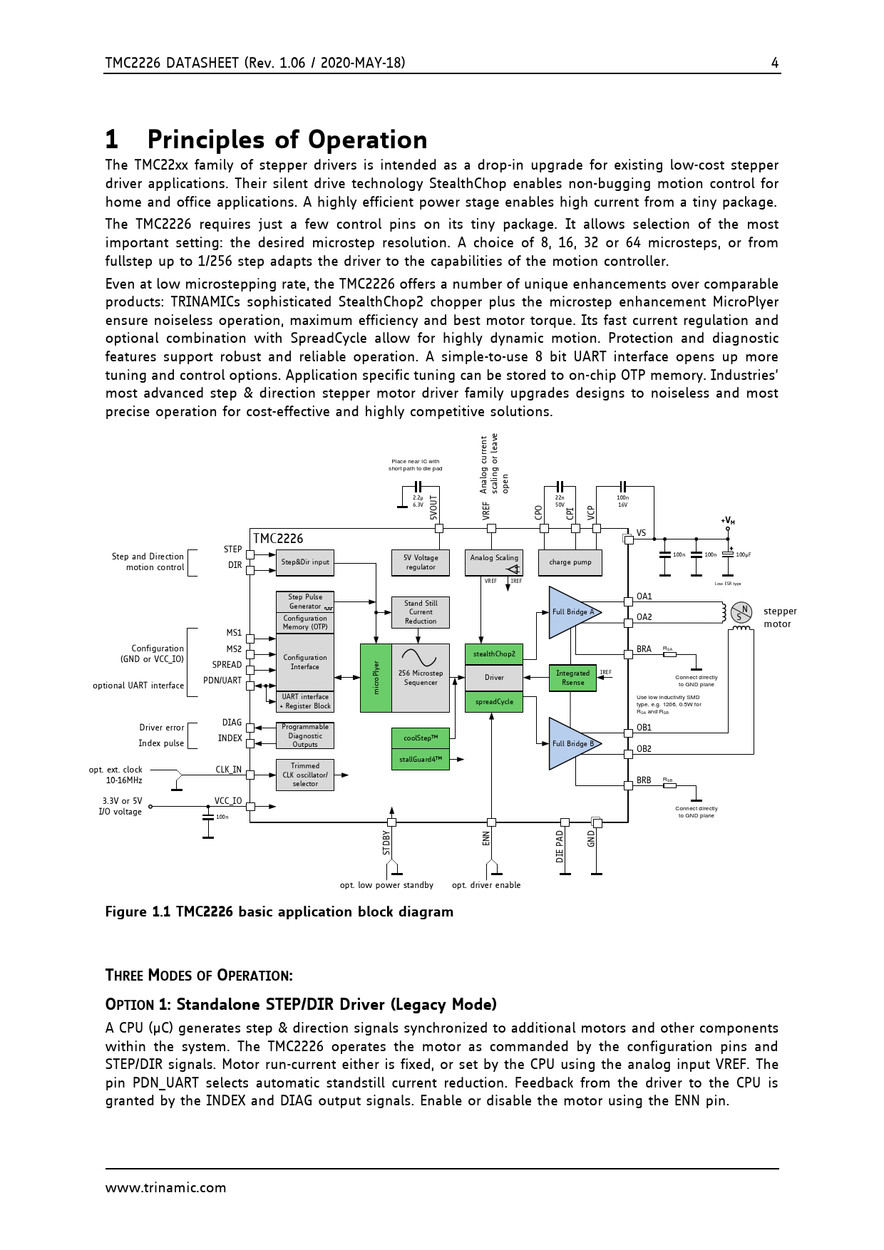1 Principles of Operation. +VM. Figure 1.1 TMC2226 basic application block diagram. THREE MODES OF OPERATION: