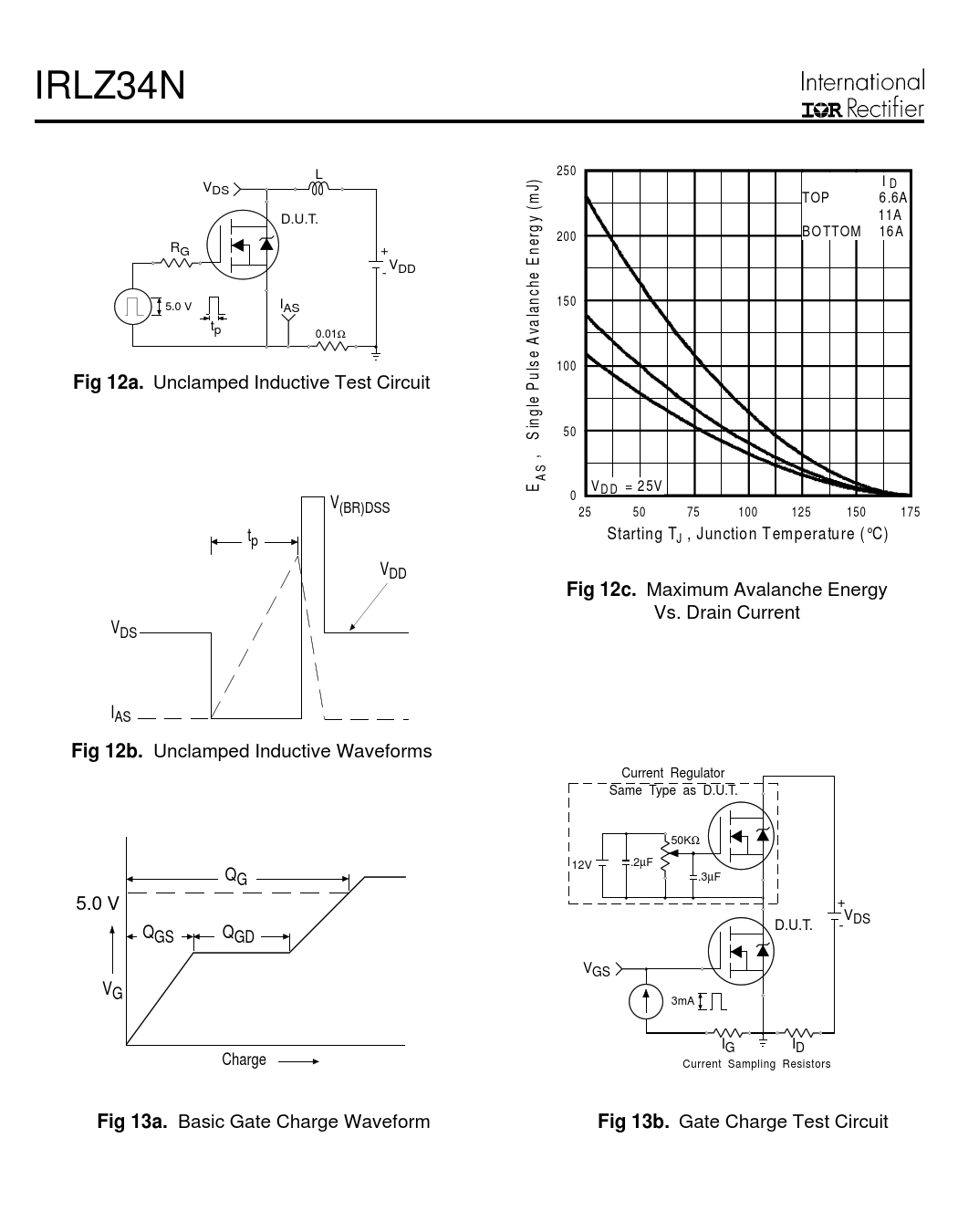 IRLZ34N L 250 ) V I D DS J m TOP 6 .6A ( D.U.T. y 11A g 200 BO TTOM 16 A RG + ner VDD E - he 5.0 V I 150 AS lanc t a p v 0.01Ω e A ls 100