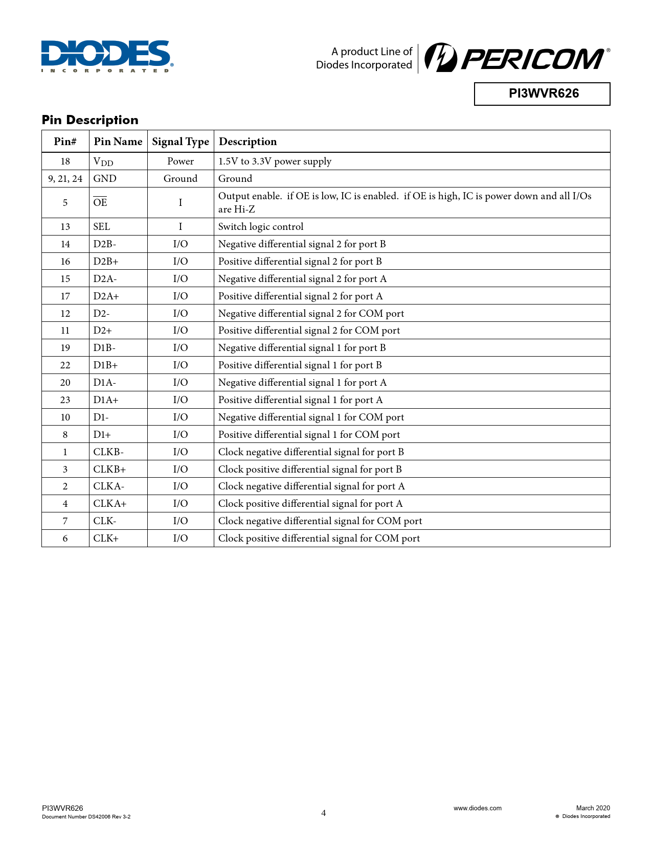 PI3WVR626 Pin Description Pin# Pin Name Signal Type Description