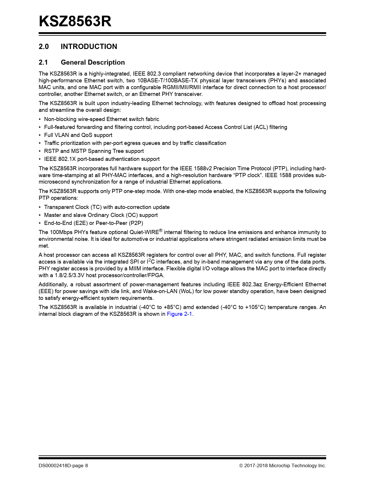 Pages / Page221 / 8 — KSZ8563R. 2.0. INTRODUCTION. 2.1. General Description