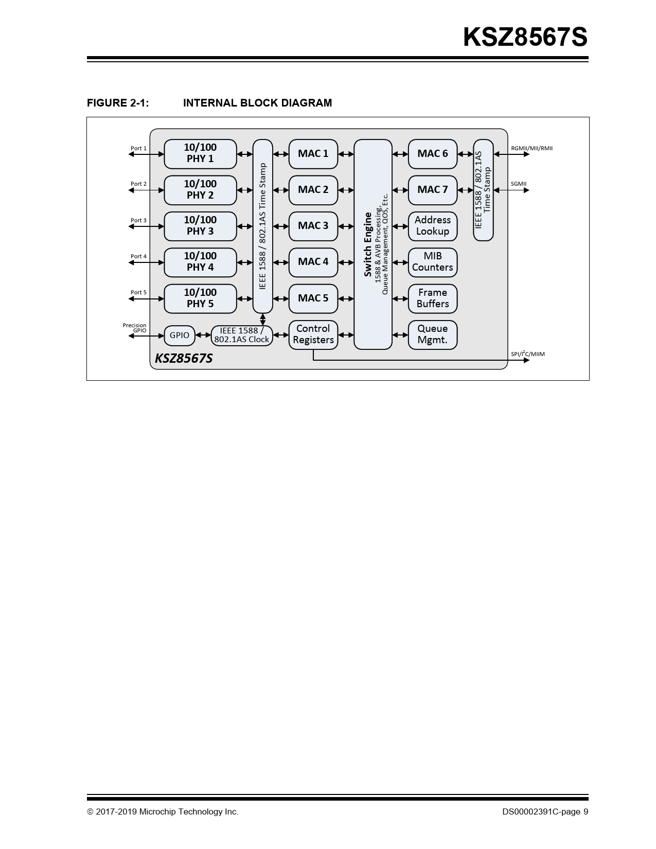 | Pages / Page | 245 / 9 — KSZ8567S. FIGURE 2-1:. INTERNAL BLOCK DIAGRAM. 10/100. PHY 1. MAC 1. … |