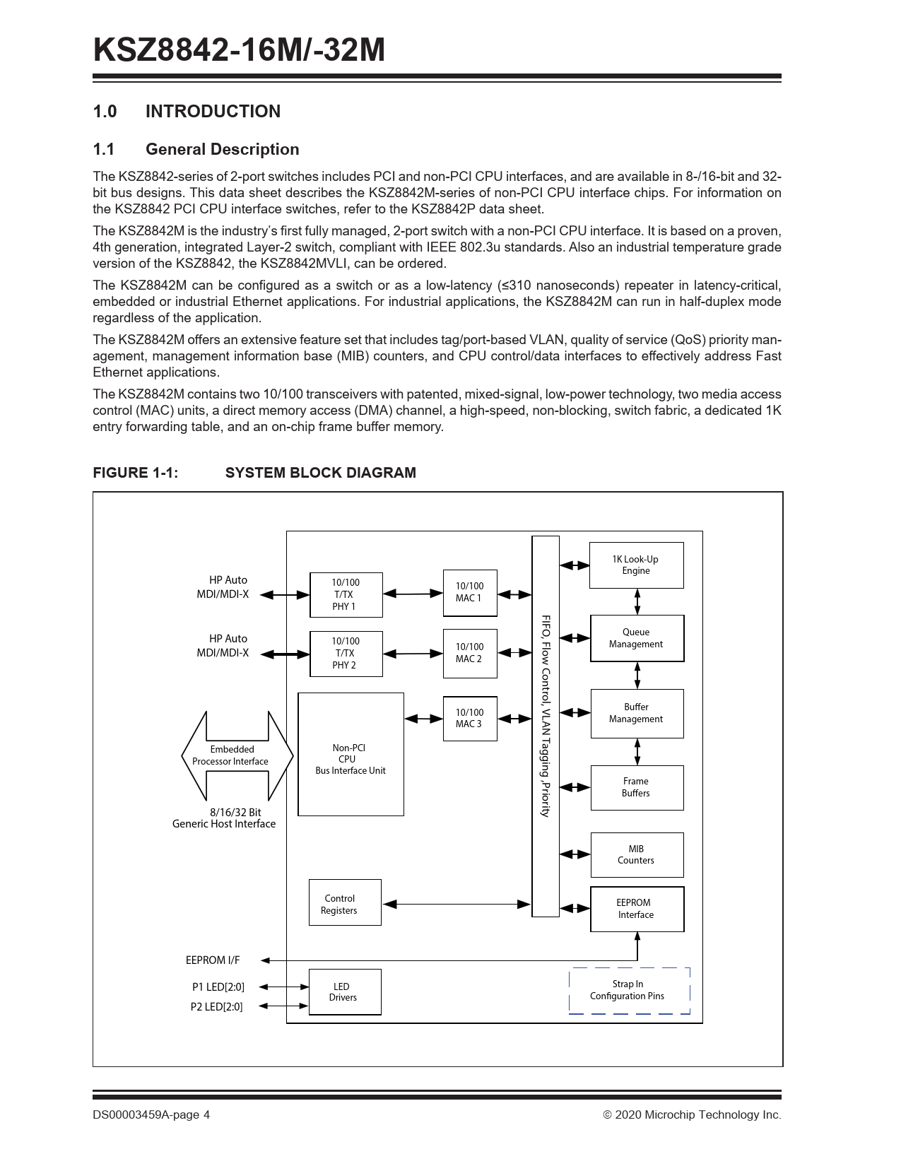 KSZ8842-16M/-32M 1.0 INTRODUCTION 1.1 General Description FIGURE 1-1: SYSTEM BLOCK DIAGRAM