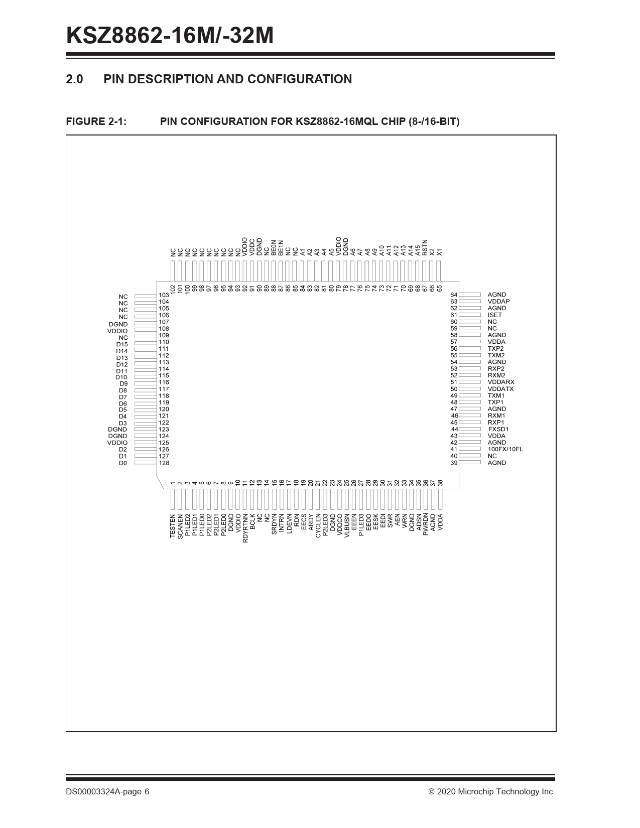 | Pages / Page | 126 / 6 — KSZ8862-16M/-32M. 2.0. PIN DESCRIPTION AND CONFIGURATION. FIGURE 2-1:. … |