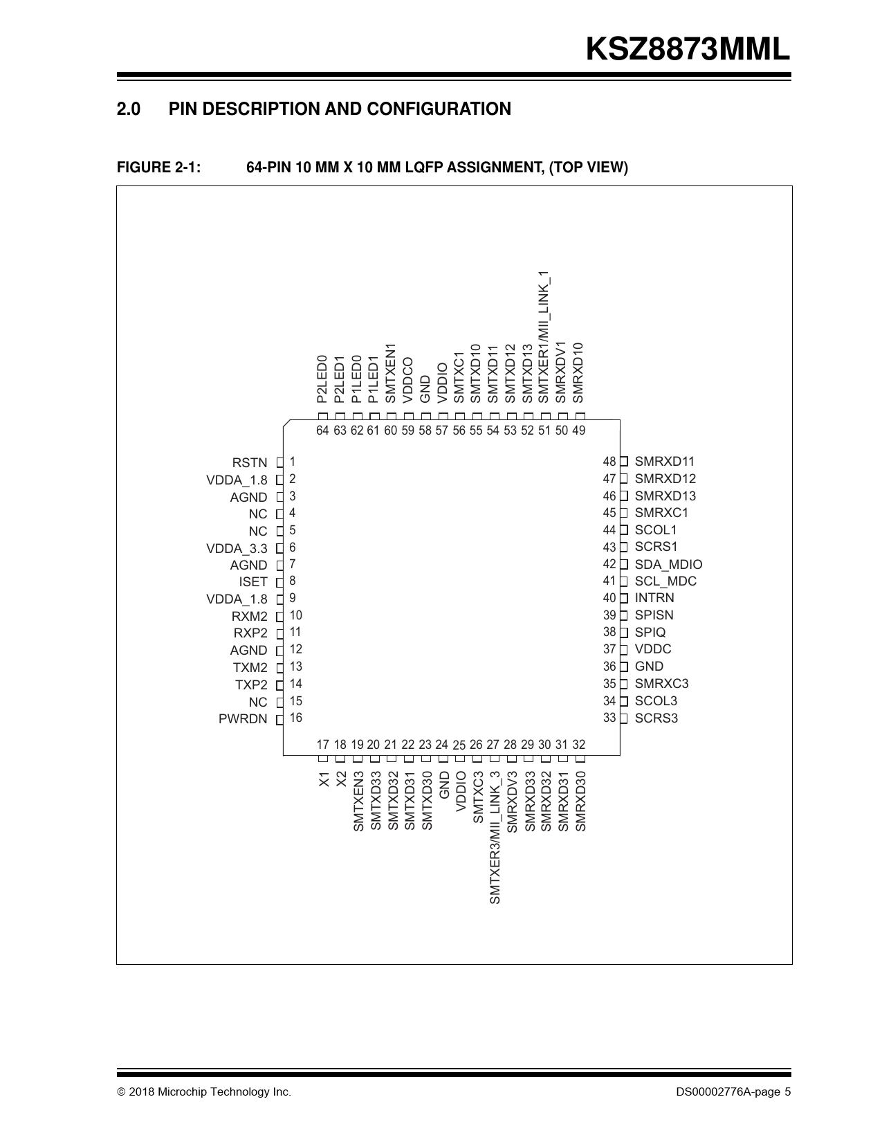 | Pages / Page | 91 / 5 — KSZ8873MML. 2.0. PIN DESCRIPTION AND CONFIGURATION. FIGURE 2-1:. 64-PIN … |