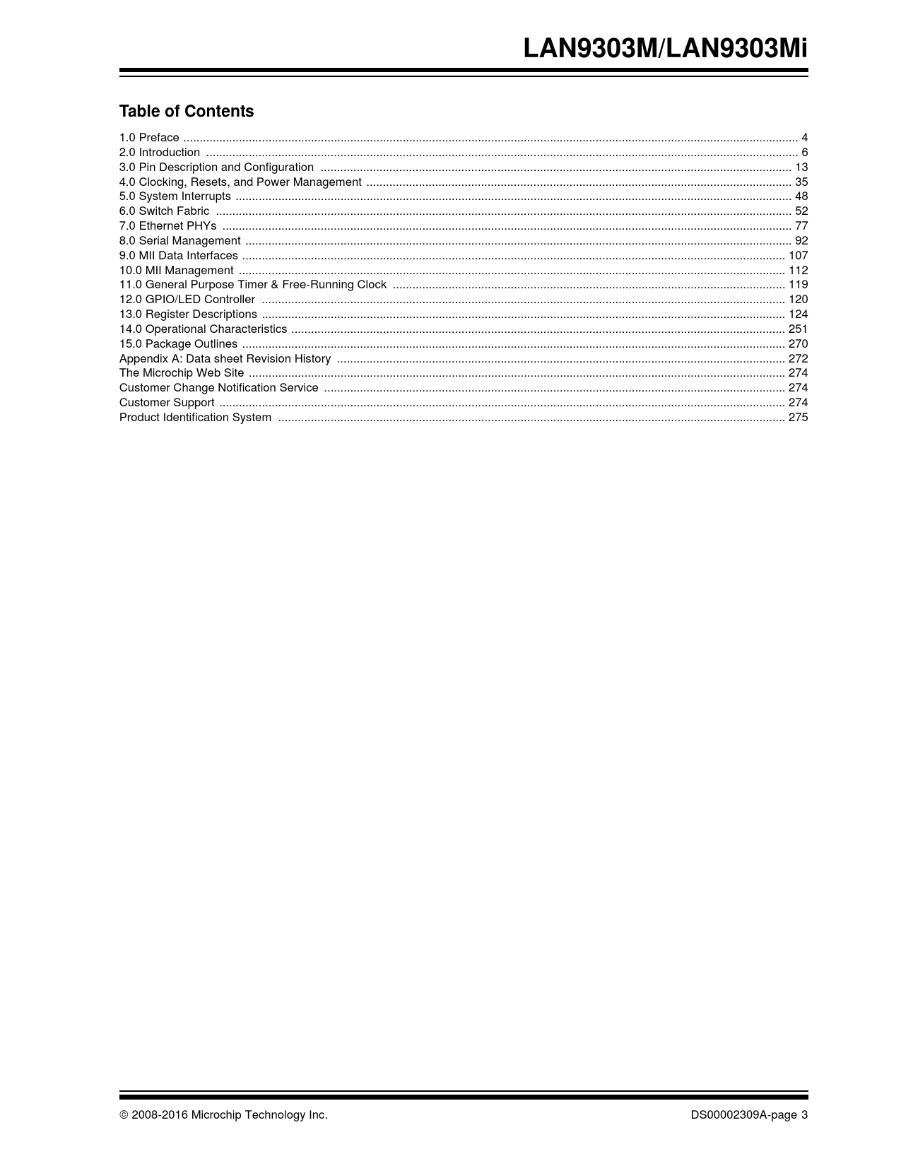 | Pages / Page | 277 / 3 — LAN9303M/LAN9303Mi. Table of Contents |