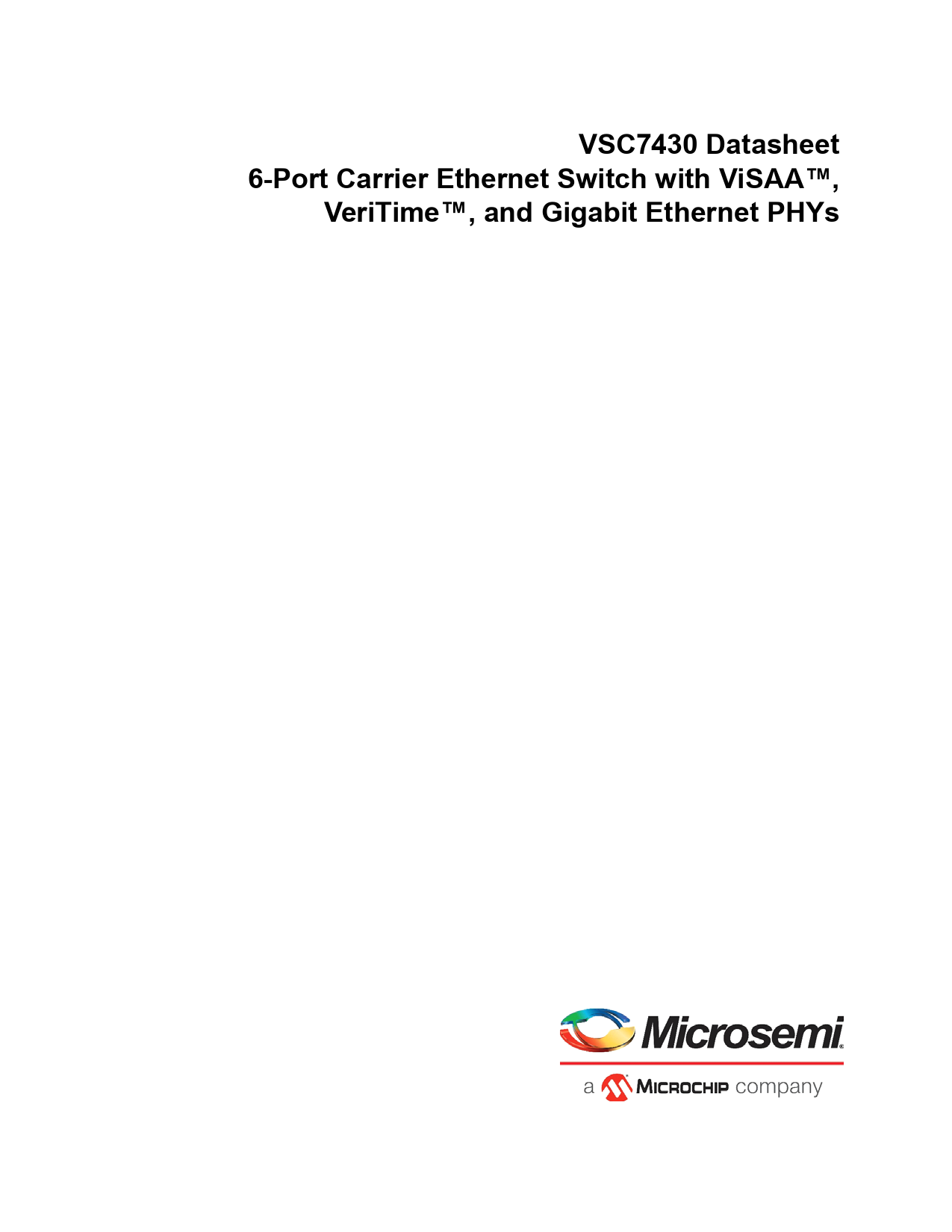 VSC7430 Datasheet. 6-Port Carrier Ethernet Switch with ViSAA™,. VeriTime™, and Gigabit Ethernet PHYs
