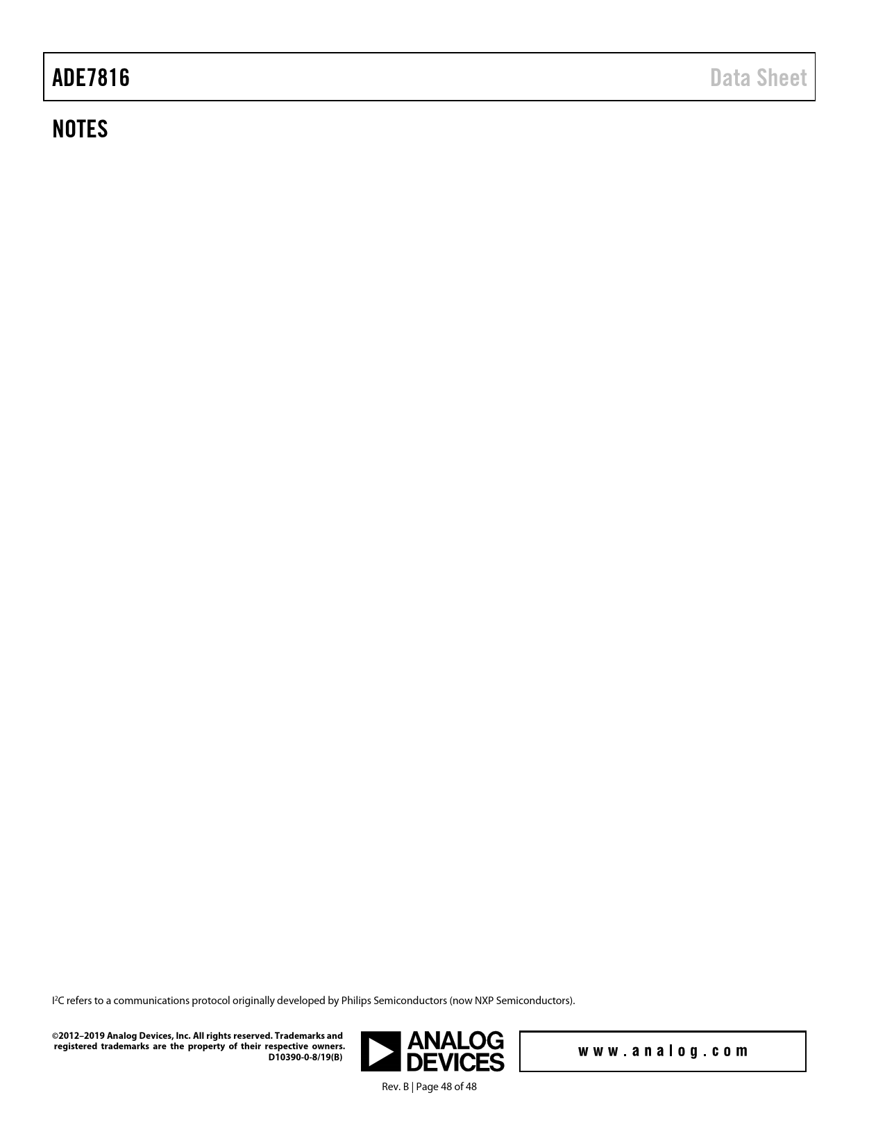| Pages / Page | 48 / 48 — ADE7816. Data Sheet. NOTES |