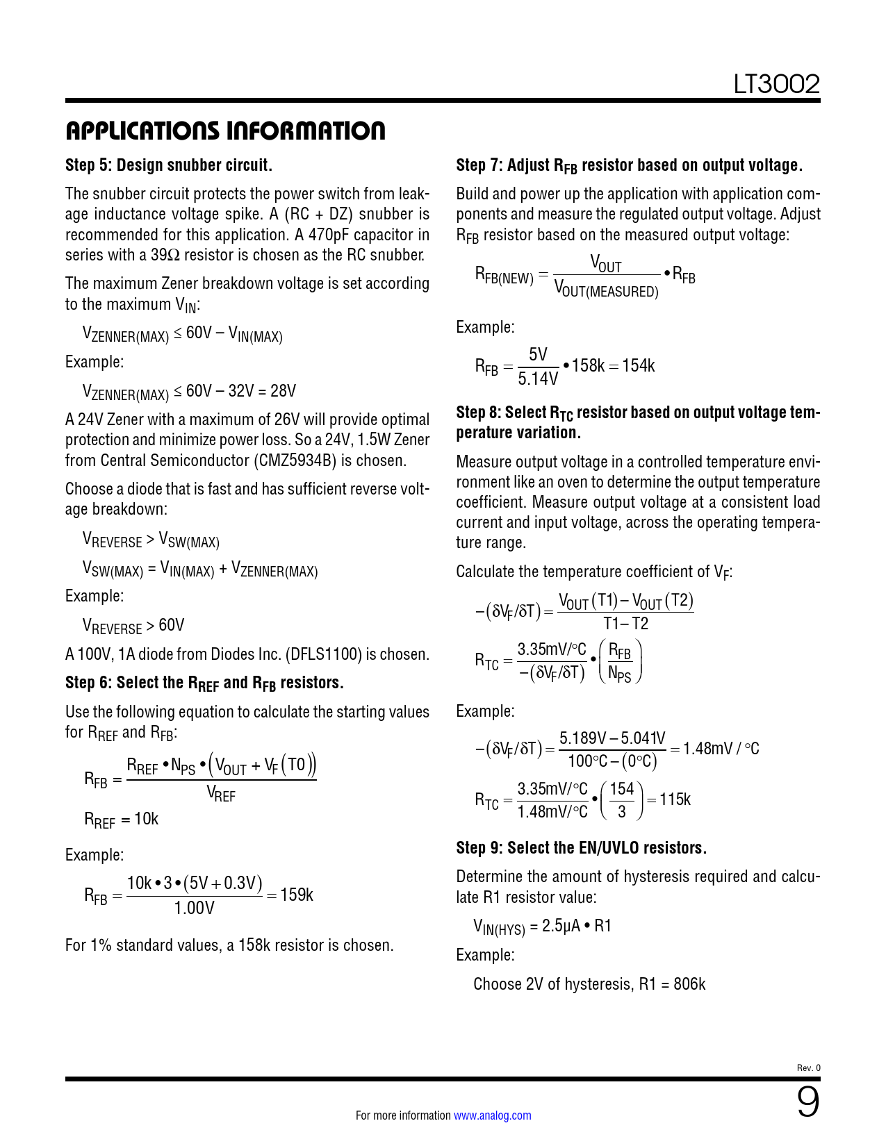 Pages / Page12 / 9 — APPLICATIONS INFORMATION Step 5: Design snubber circuit. Step 7: Adjust …