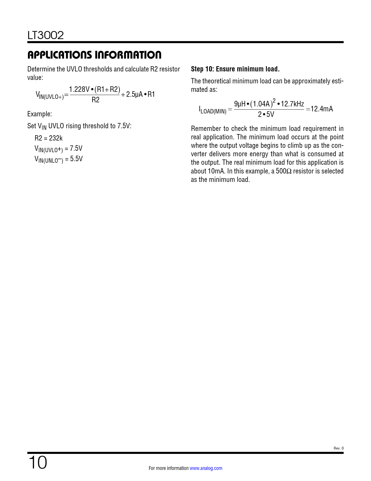 Pages / Page12 / 10 — APPLICATIONS INFORMATION. Step 10: Ensure minimum load