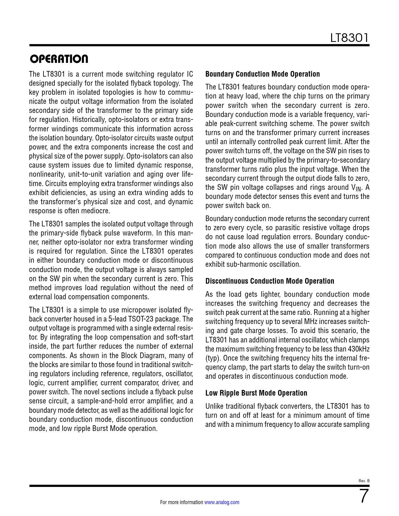 OPERATION Boundary Conduction Mode Operation Discontinuous Conduction Mode Operation Low Ripple Burst Mode Operation