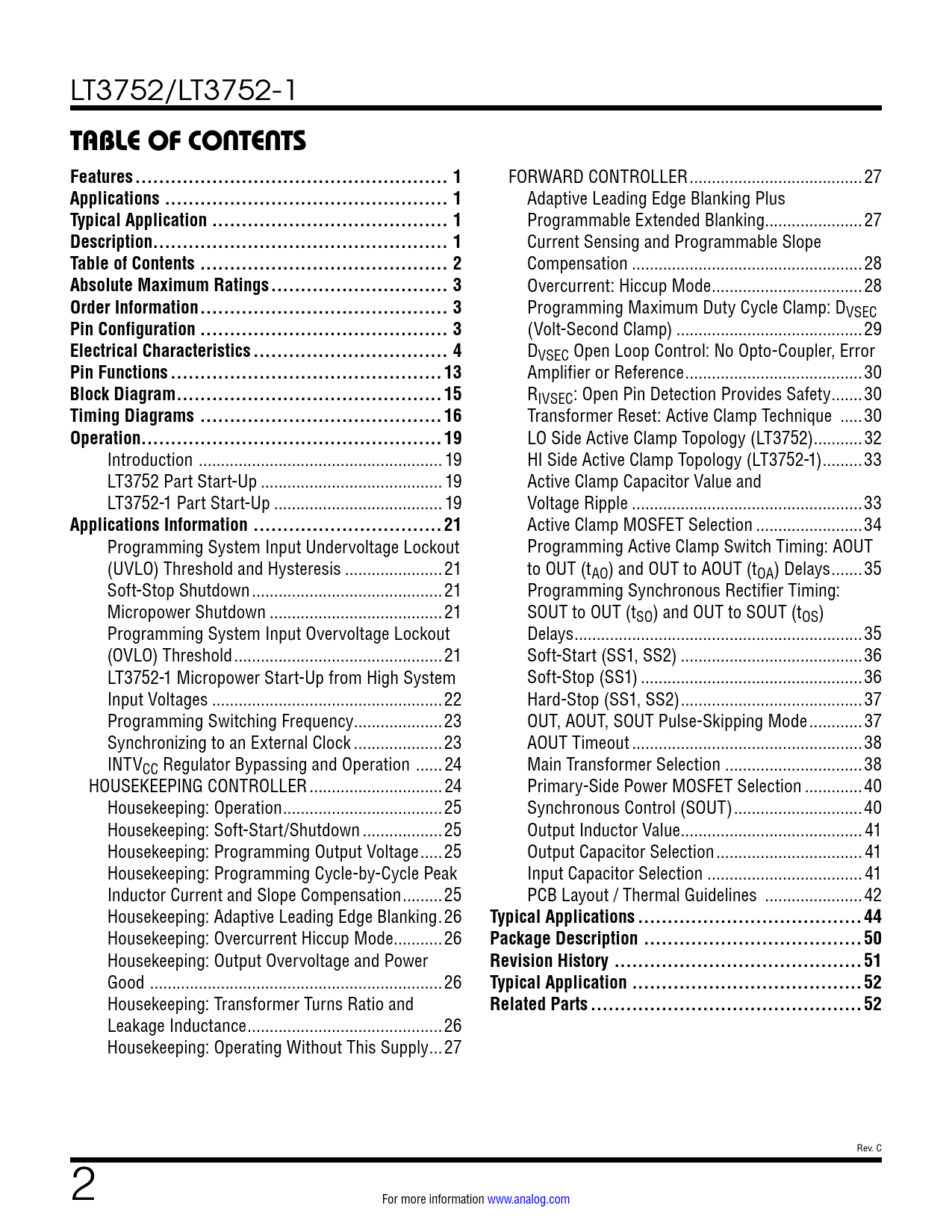 Pages / Page52 / 2 — TABLE OF CONTENTS Features ... 1. Applications .. 1. Typical Application …