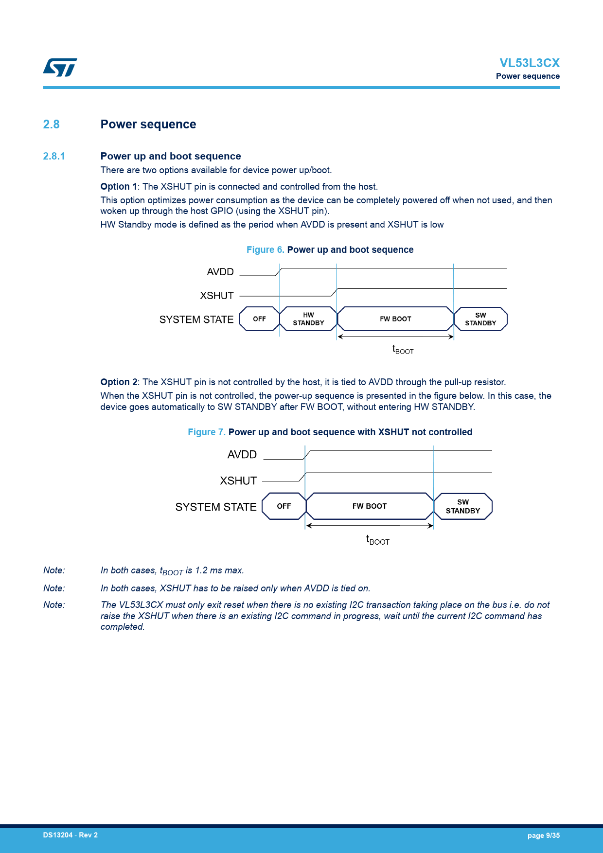 Pages / Page35 / 9 — VL53L3CX. Power sequence. 2.8. 2.8.1. Power up and boot sequence. Option …