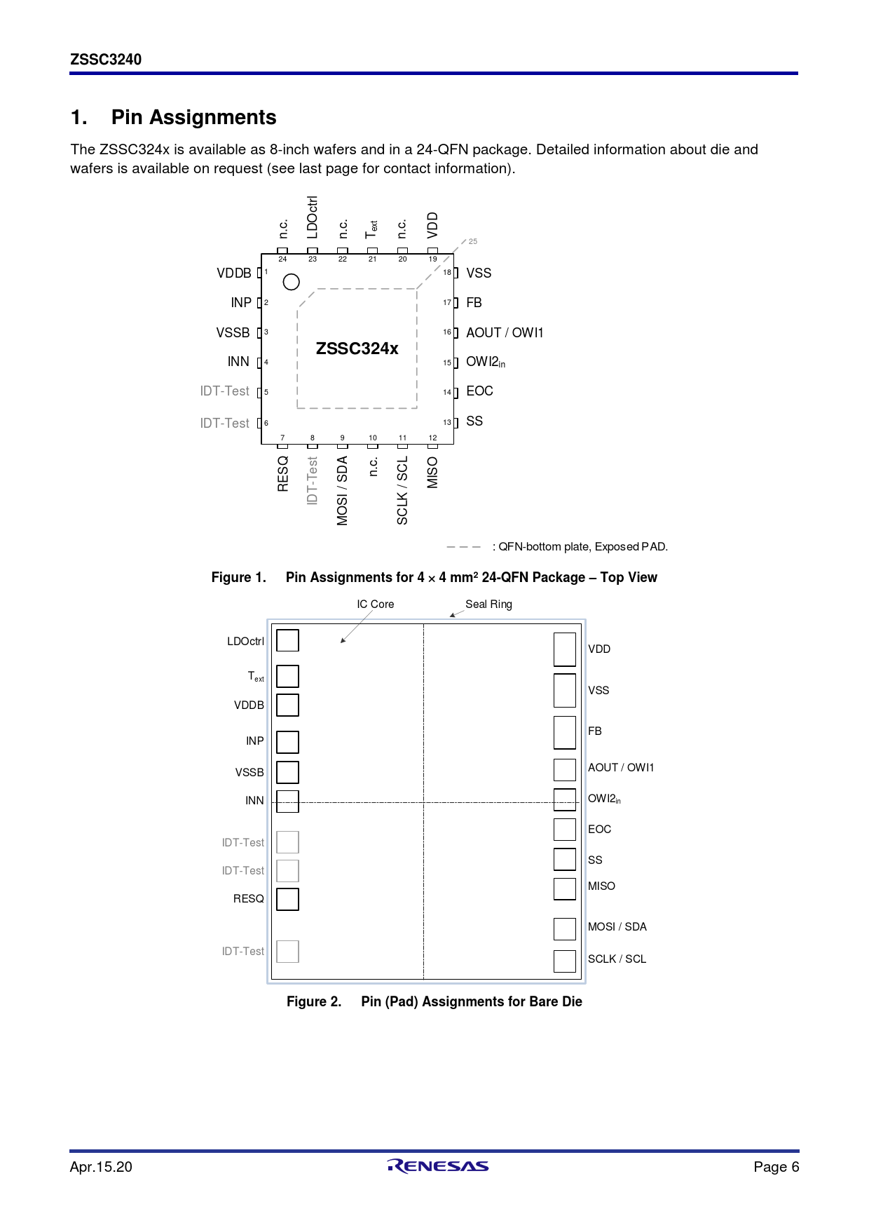 Pages / Page64 / 6 — ZSSC3240. 1. Pin Assignments. ZSSC324x. Figure 1. Pin Assignments for 4. …