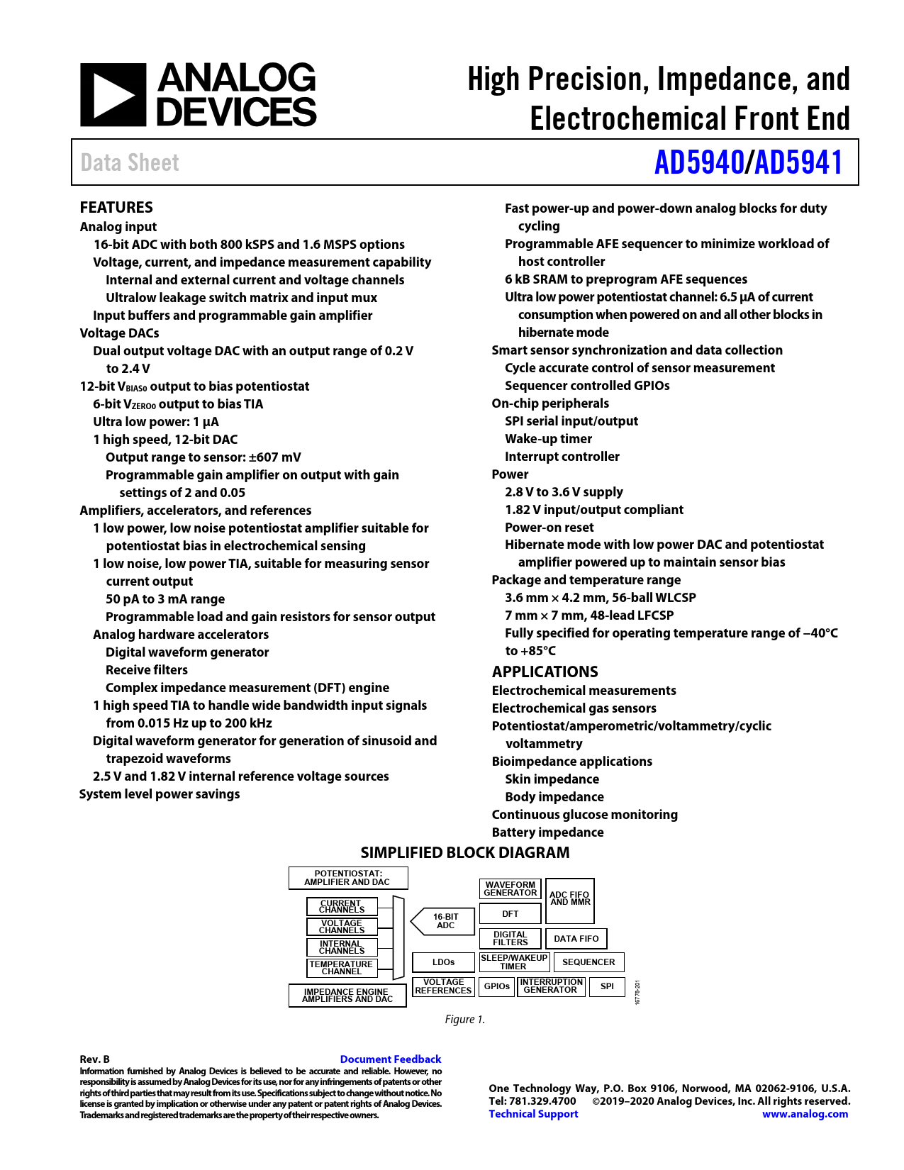 High Precision, Impedance, and. Electrochemical Front End. Data Sheet. AD5940/. AD5941. FEATURES