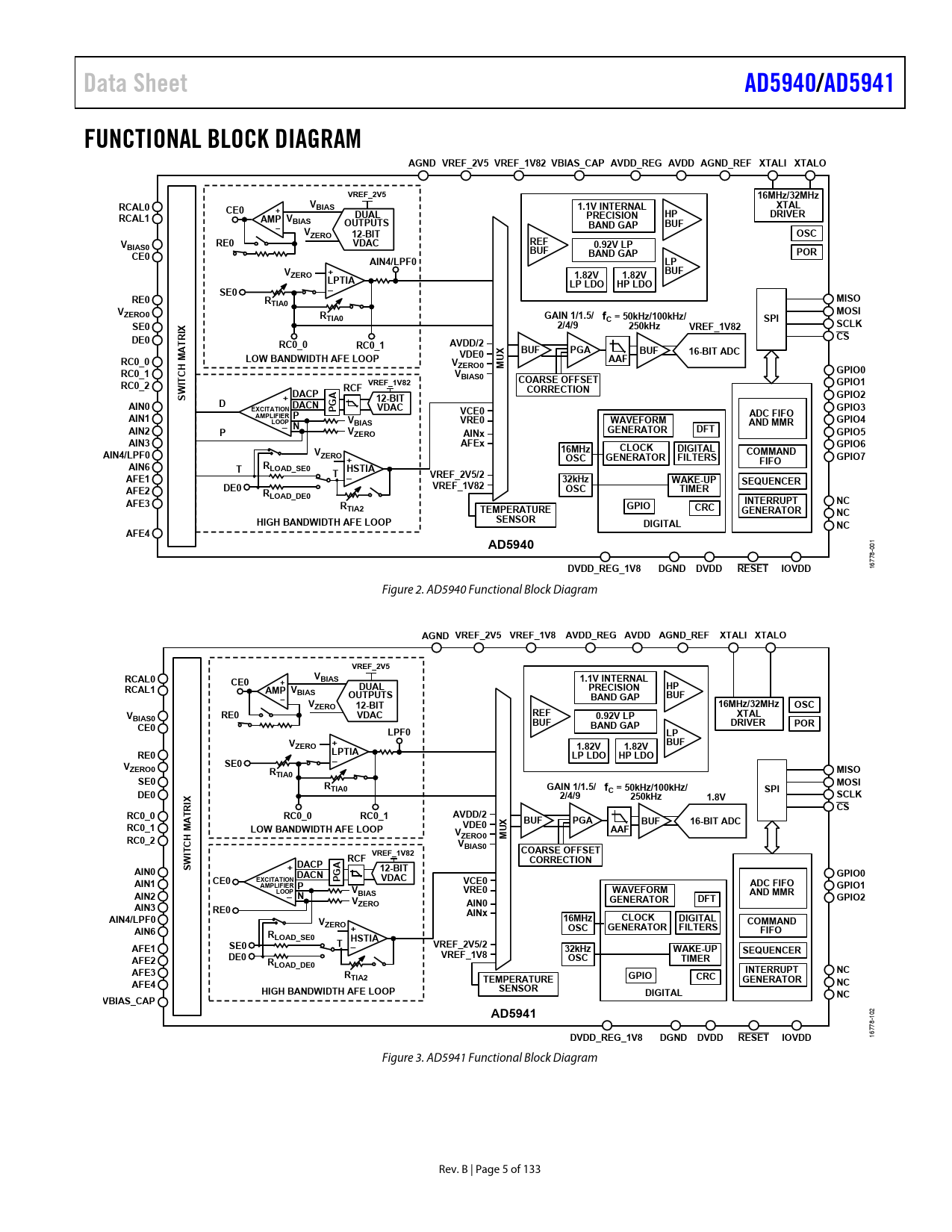 Pages / Page133 / 5 — Data Sheet. AD5940/. AD5941. FUNCTIONAL BLOCK DIAGRAM. AGND VREF_2V5 …