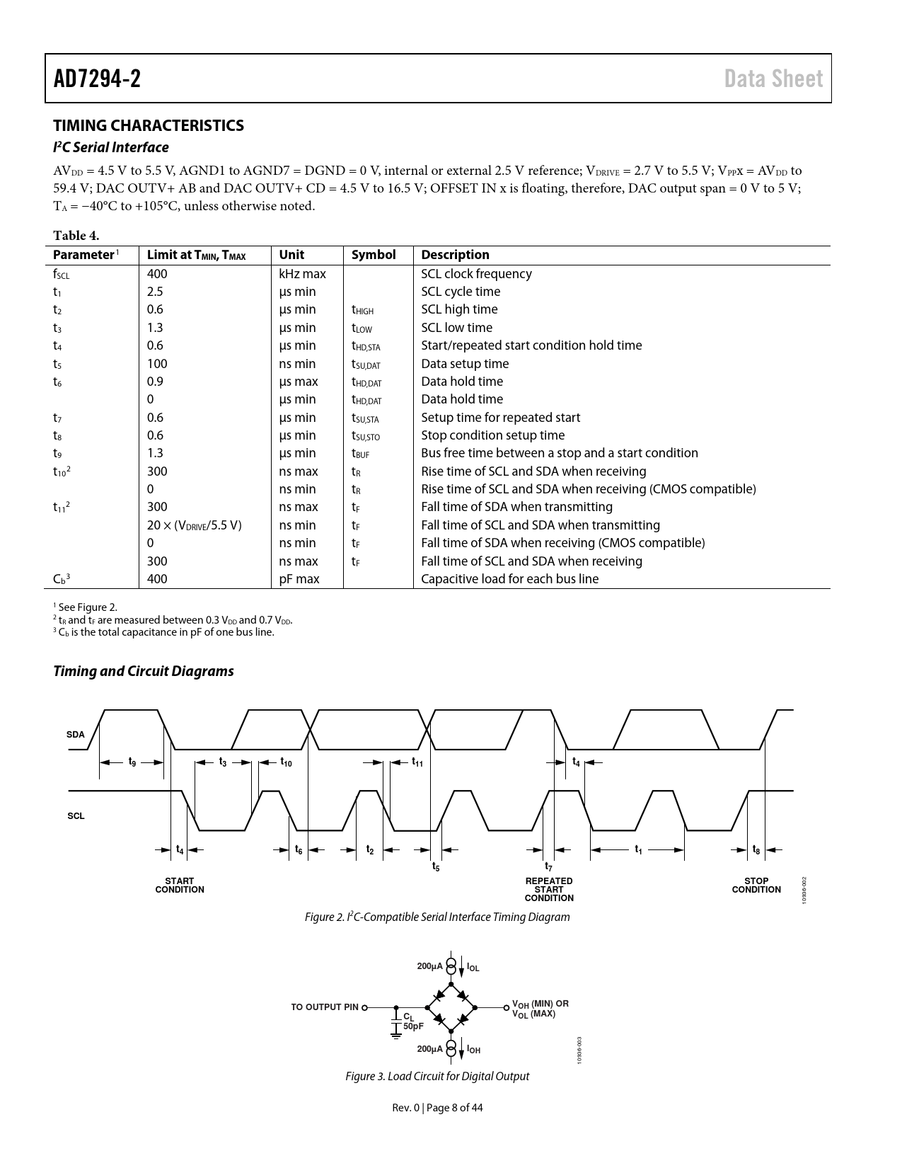 Pages / Page44 / 8 — AD7294-2. Data Sheet. TIMING CHARACTERISTICS I2C Serial Interface. Table …