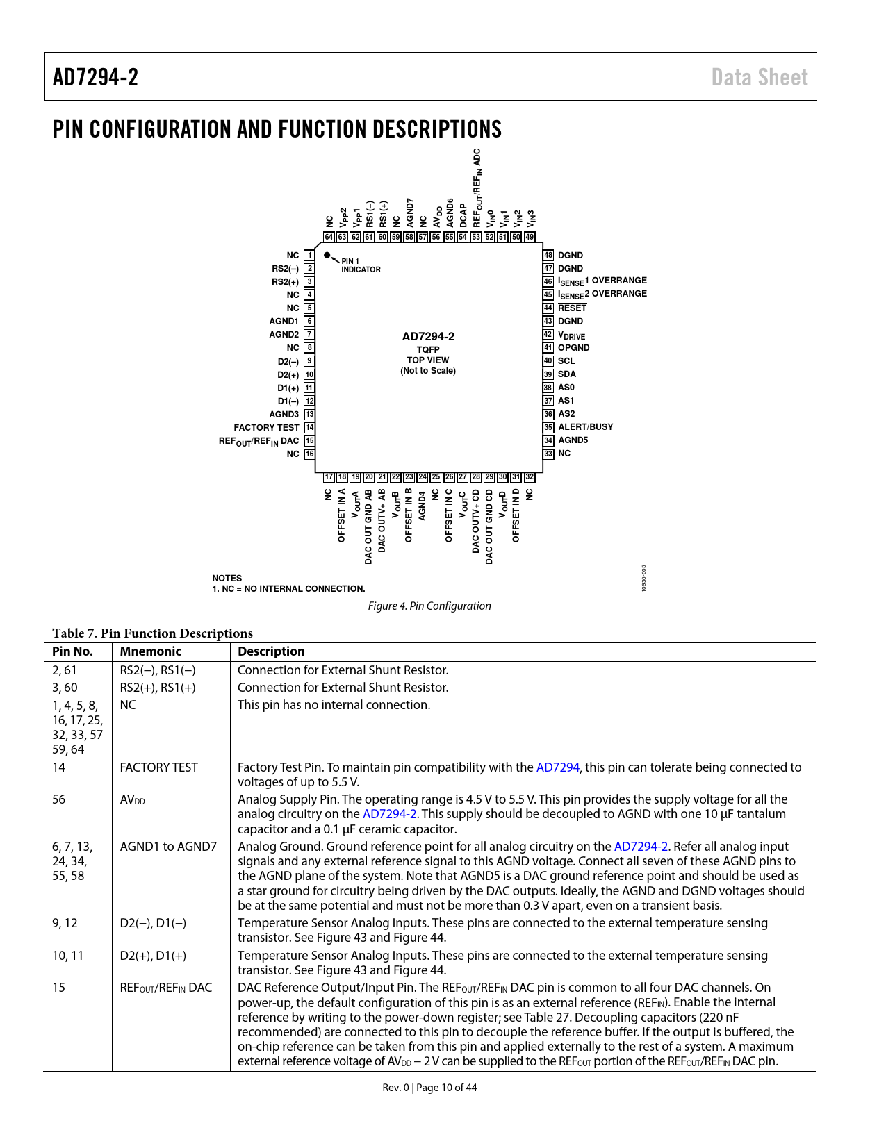 Pages / Page44 / 10 — AD7294-2. Data Sheet. PIN CONFIGURATION AND FUNCTION DESCRIPTIONS. C D A. …