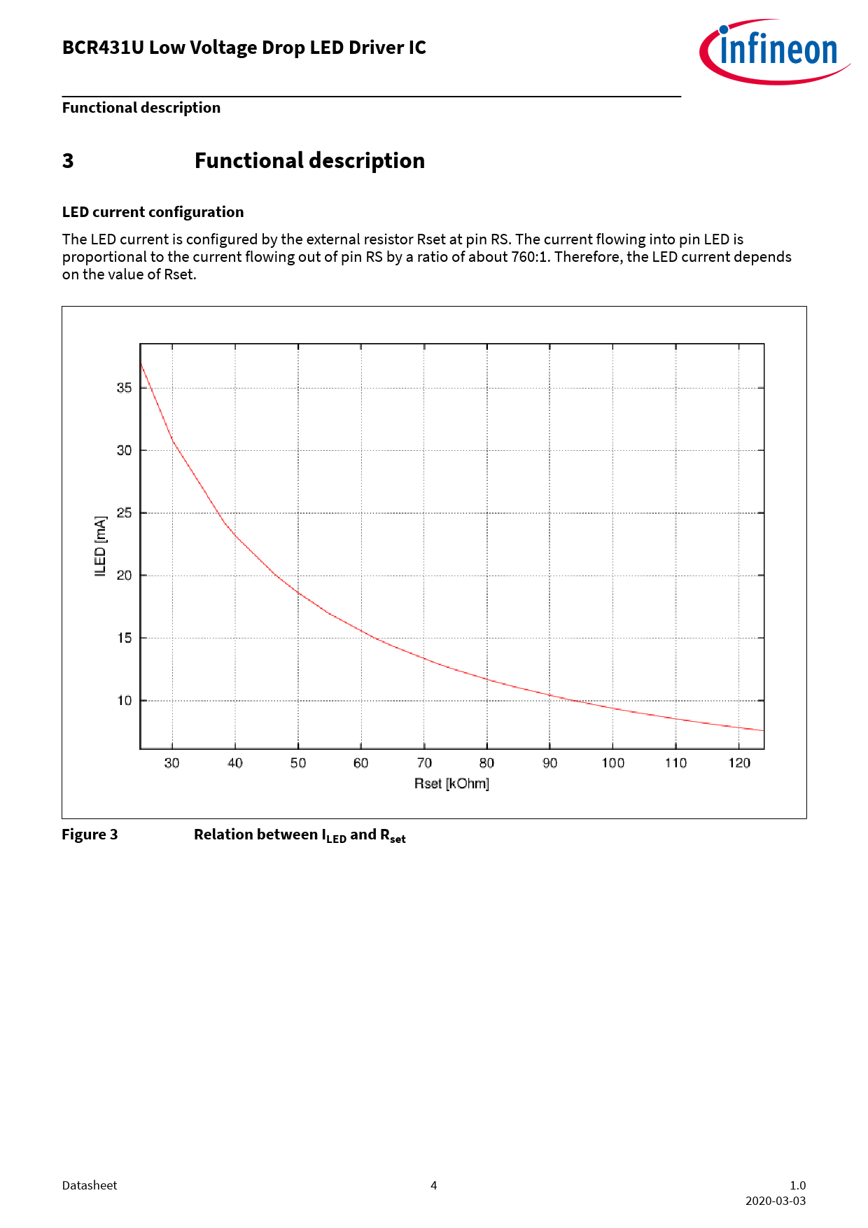BCR431U Low Voltage Drop LED Driver IC Functional description 3 Functional description LED current configuration