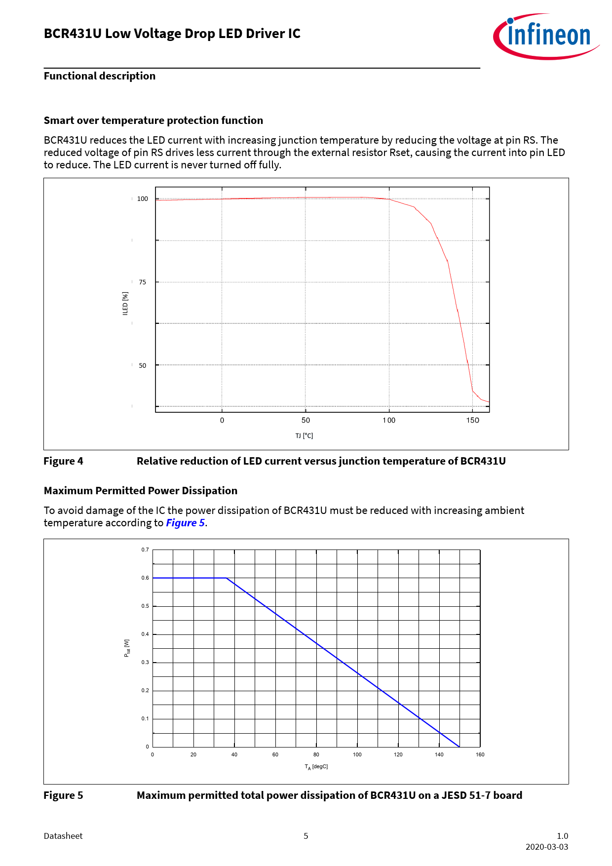 BCR431U Low Voltage Drop LED Driver IC Functional description Smart over temperature protection function Figure 4